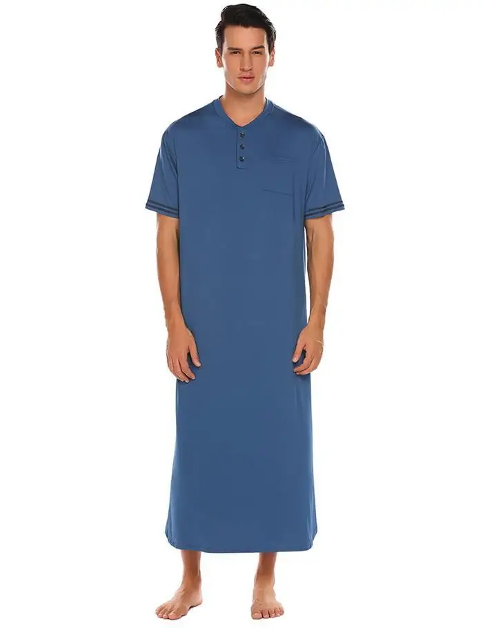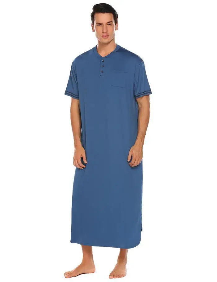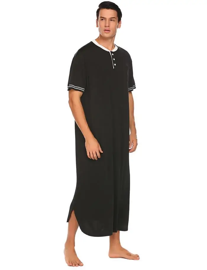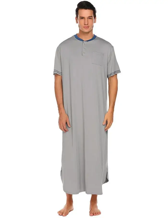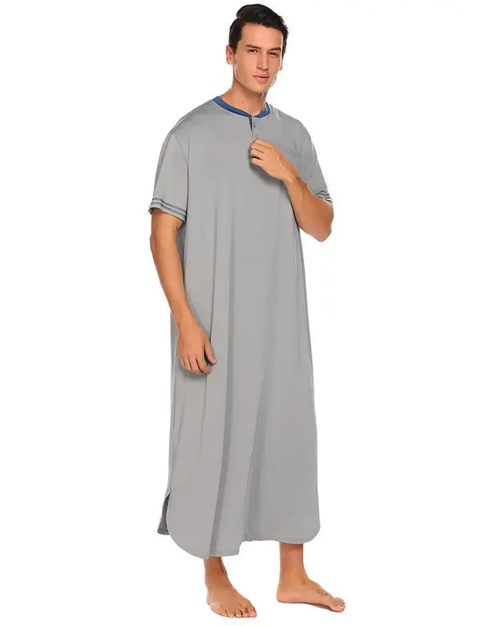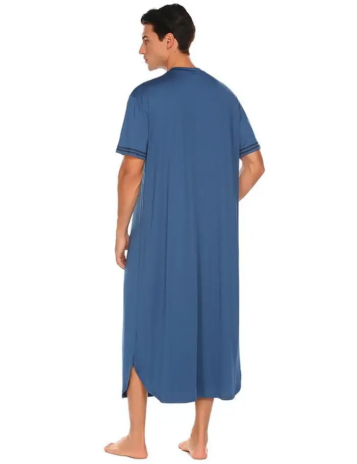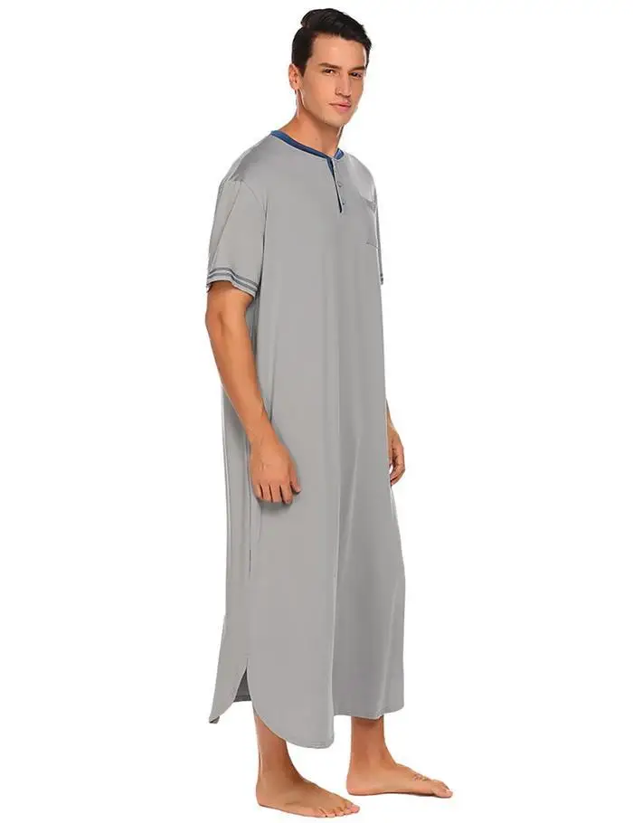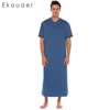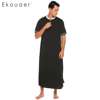 Ekouaer Men Soft Nightshirts Nightewear Short Sleeve Henley Loose Long Sleep Shirt Men Sleepwear Home Clothes Plus Size
