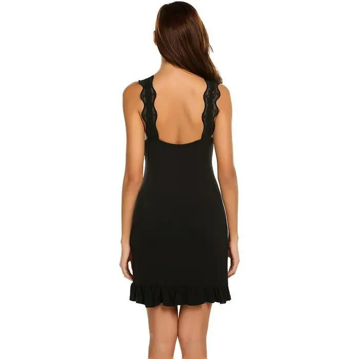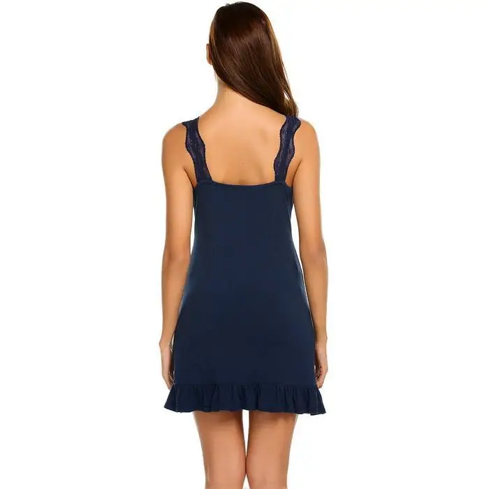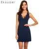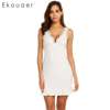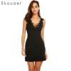 Ekouaer Sexy Lingerie Nightdress Women Nightwear V-Neck Sleeveless Ruffles Lace Chemise Nightgown Sleepwear Female Nightie Dress