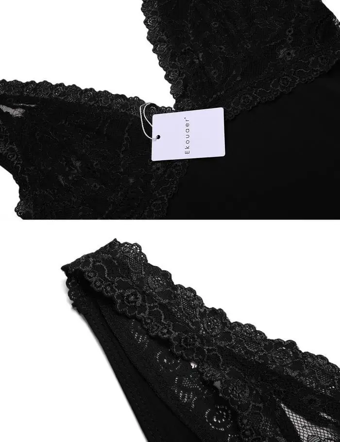 Ekouaer Sexy Nightgown Sleepwear Lace Lingerie Women V-Neck Backless Babydoll Nightgowns Night Shirt Dress Female Clothing