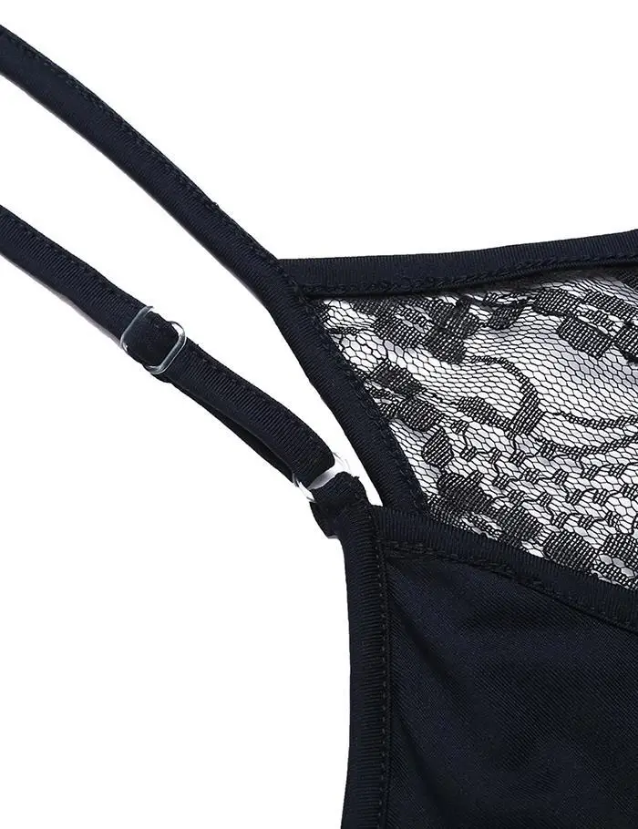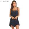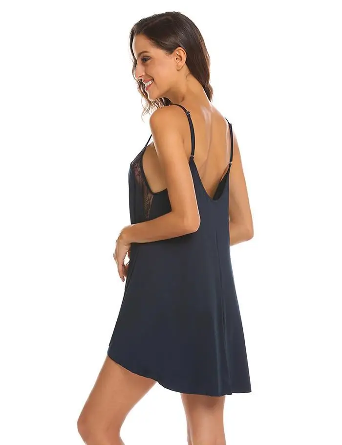Ekouaer Women Casual Sleep Dress Nightgown Adjustable Spaghetti Strap Lace Patchwork Sexy Lingerie Night Dress Female Nightie