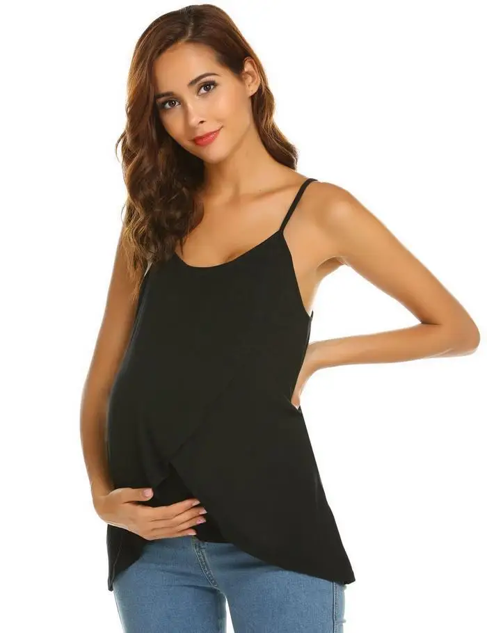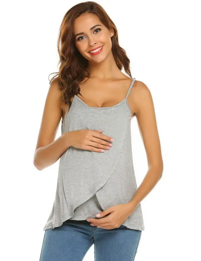 Ekouaer Women Cotton Sleep Top Adjustable Spaghetti Straps Solid Sleeveless Maternity Nursing Soft Sleepwear Top Female Nighties