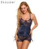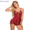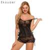 Ekouaer Women Sexy Sleepwear Lingerie Pajamas Set Spaghetti Strap V-neck Lace Patchwork Babydoll Pajamas Female Nightwear Suits