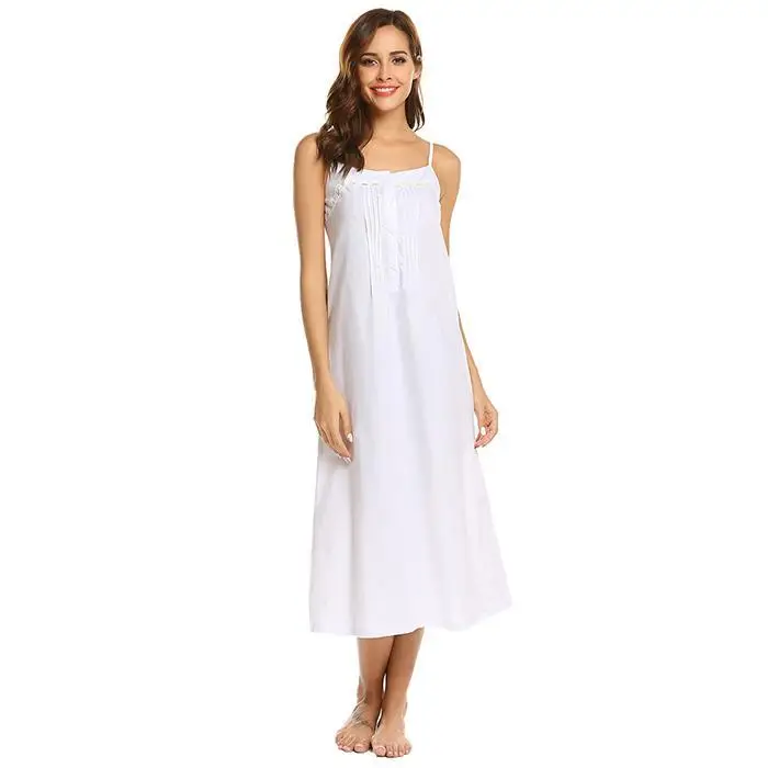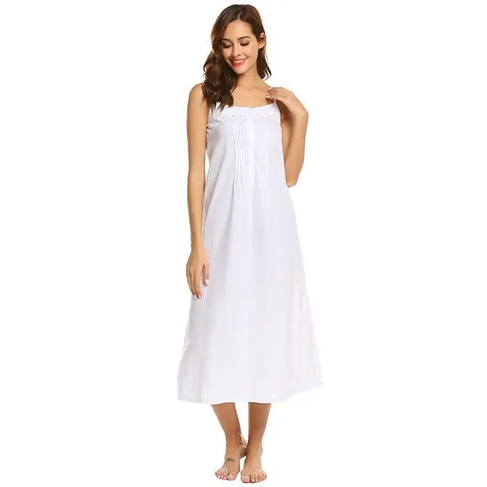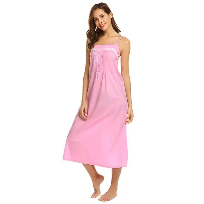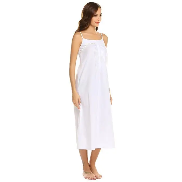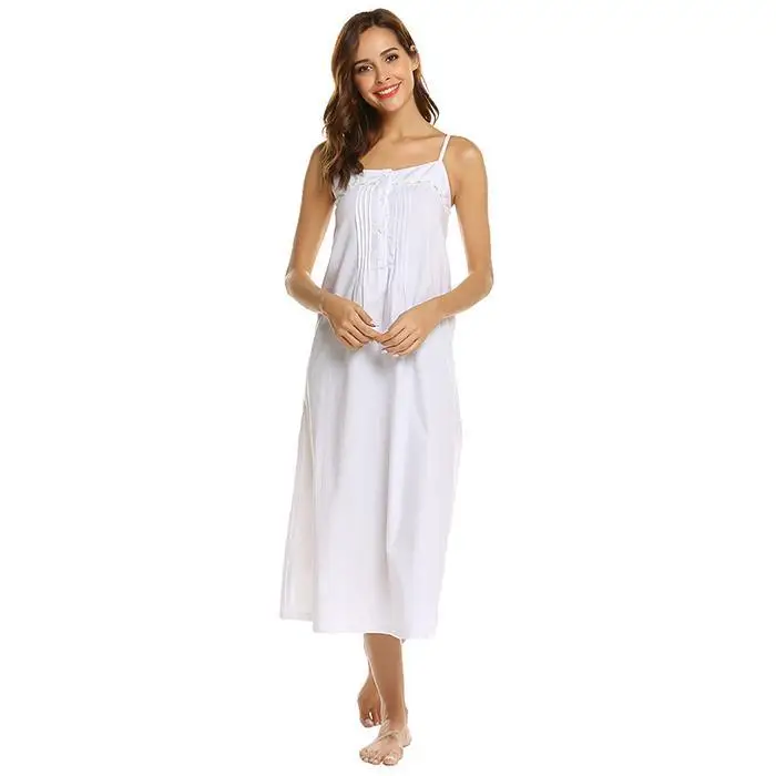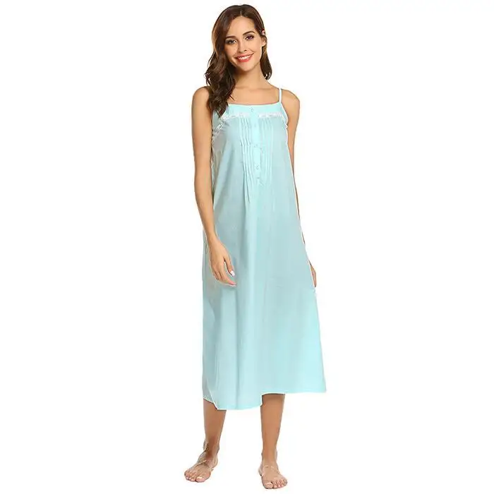 Ekouaer Women Vintage Nightgowns Sleepshirts Casual Sleeveless Adjustable Button Lace Spaghetti Straps Nightwear Night Dress