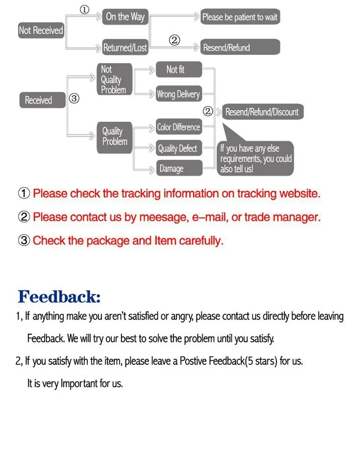 • If you did not receive the product within the guaranteed time( 45 days not including 2-5 day processing) you can request a refund or a reshipment.