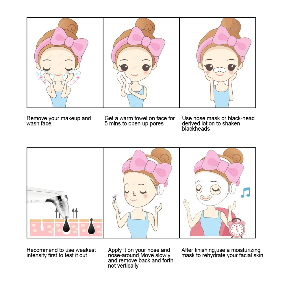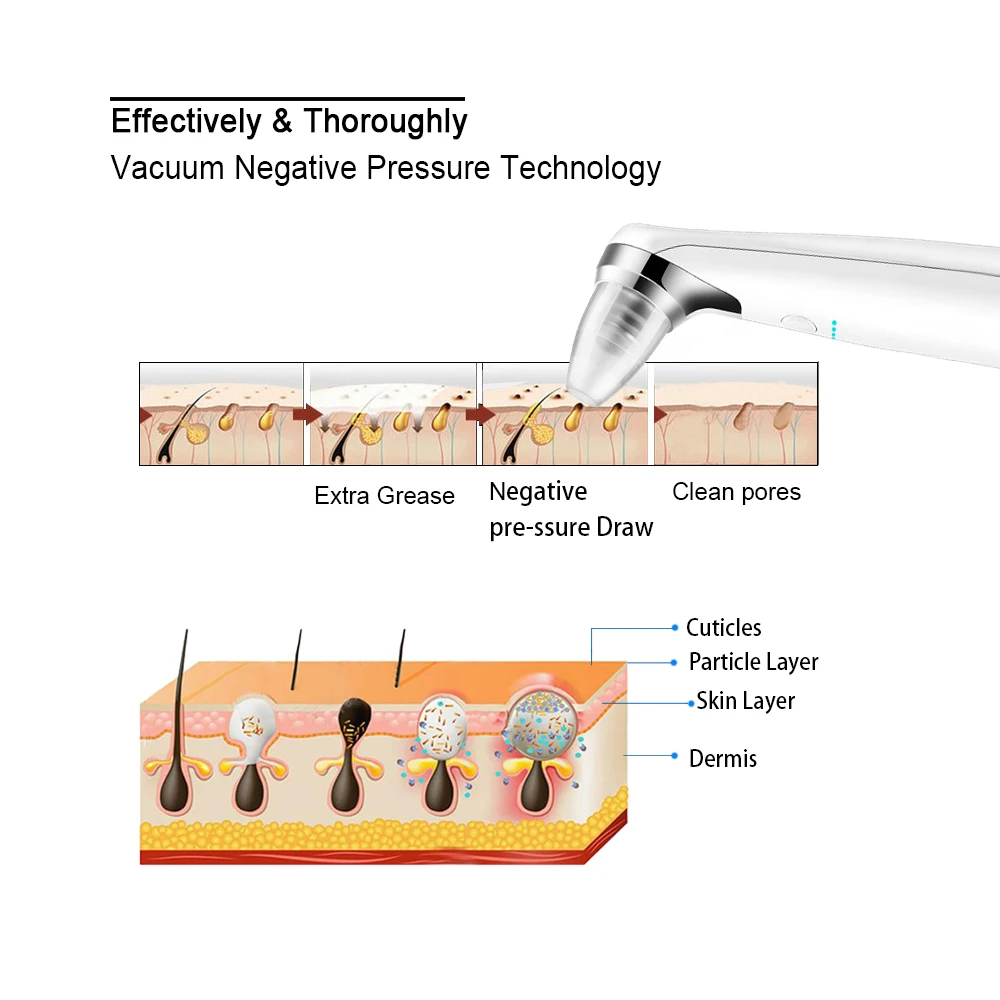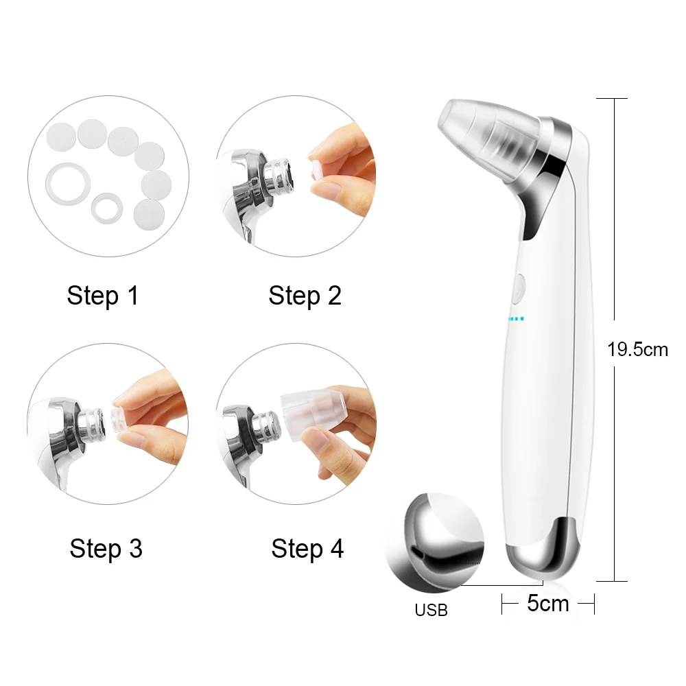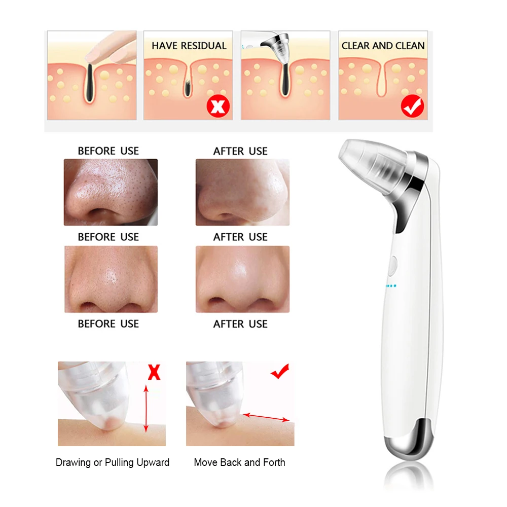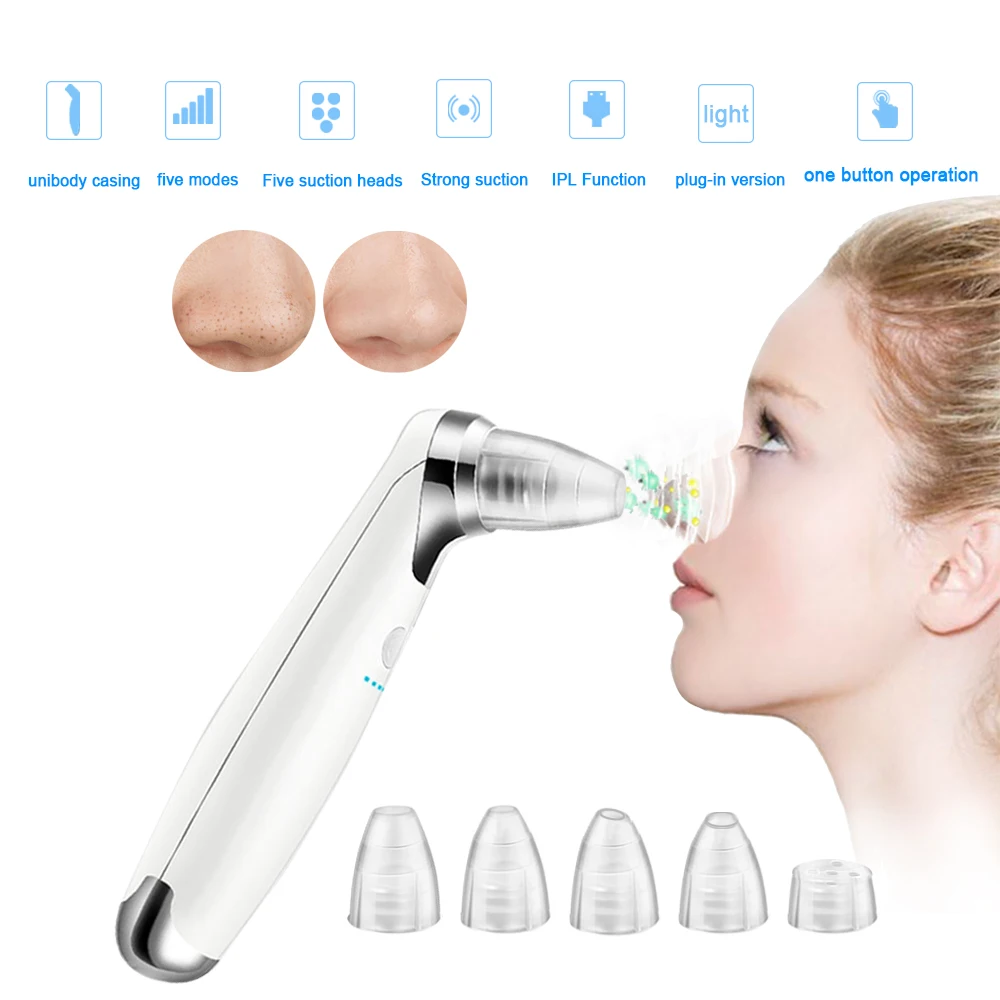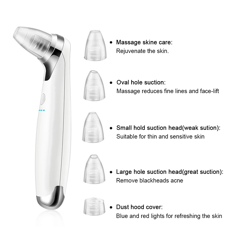 Electric Blackhead Remover Suction Pore Vacuum Facial Cleaner Electric Pore Comedo Remover Tool with 5 Replaceable Suction Head