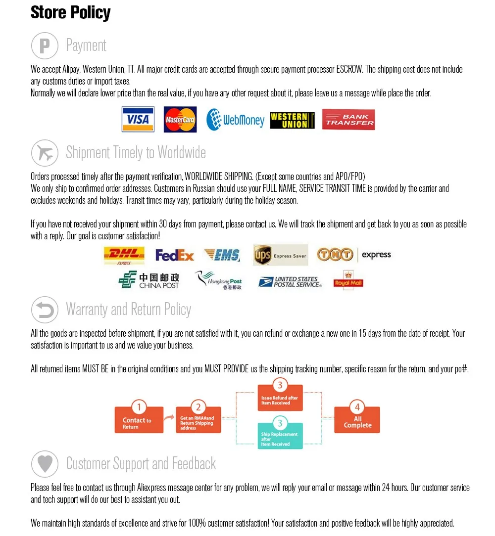 • If you did not receive the product within the guaranteed time( 45 days not including 2-5 day processing) you can request a refund or a reshipment.