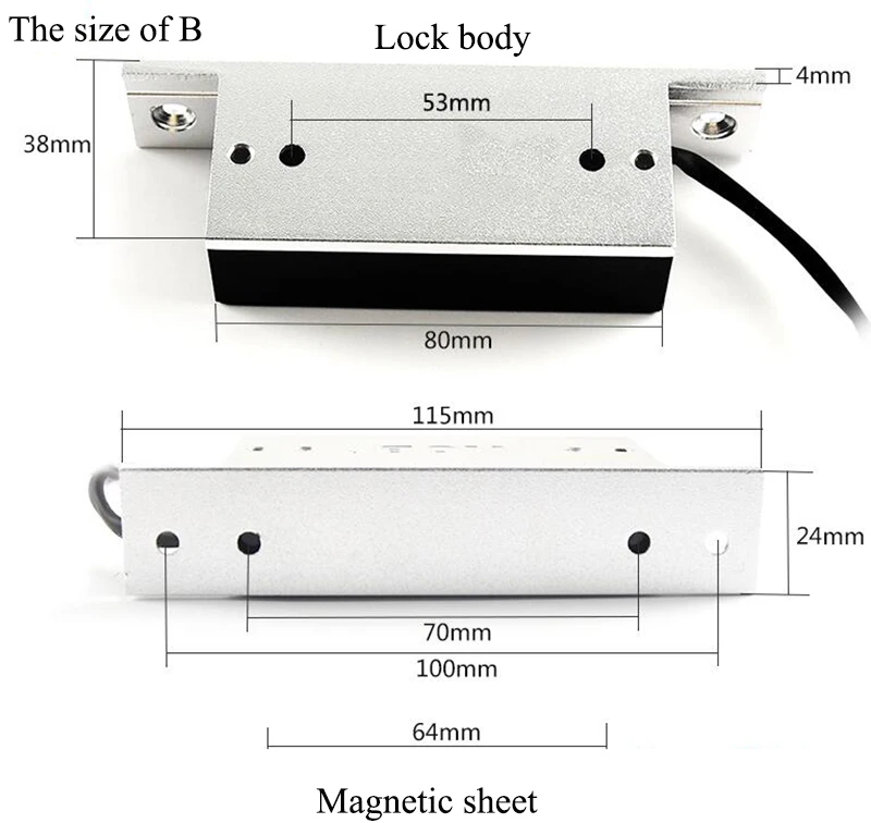 Lock body size: 80 * 40 * 24mm (length and width with mounting bracket)