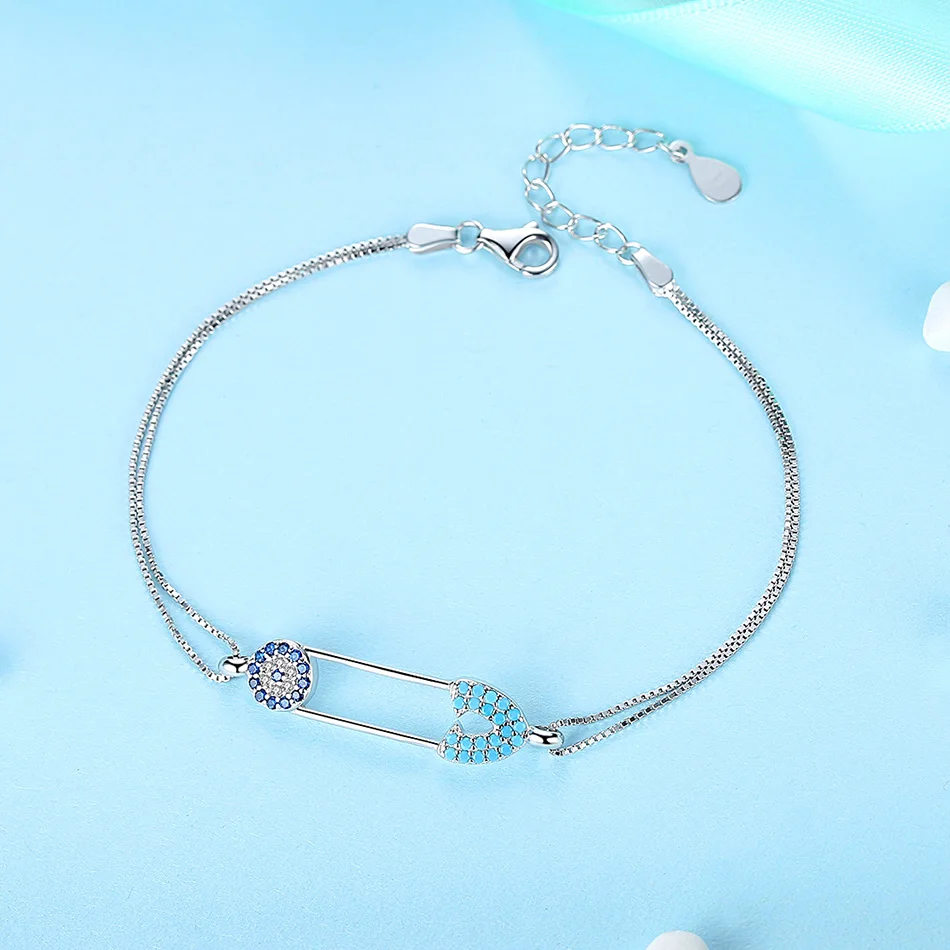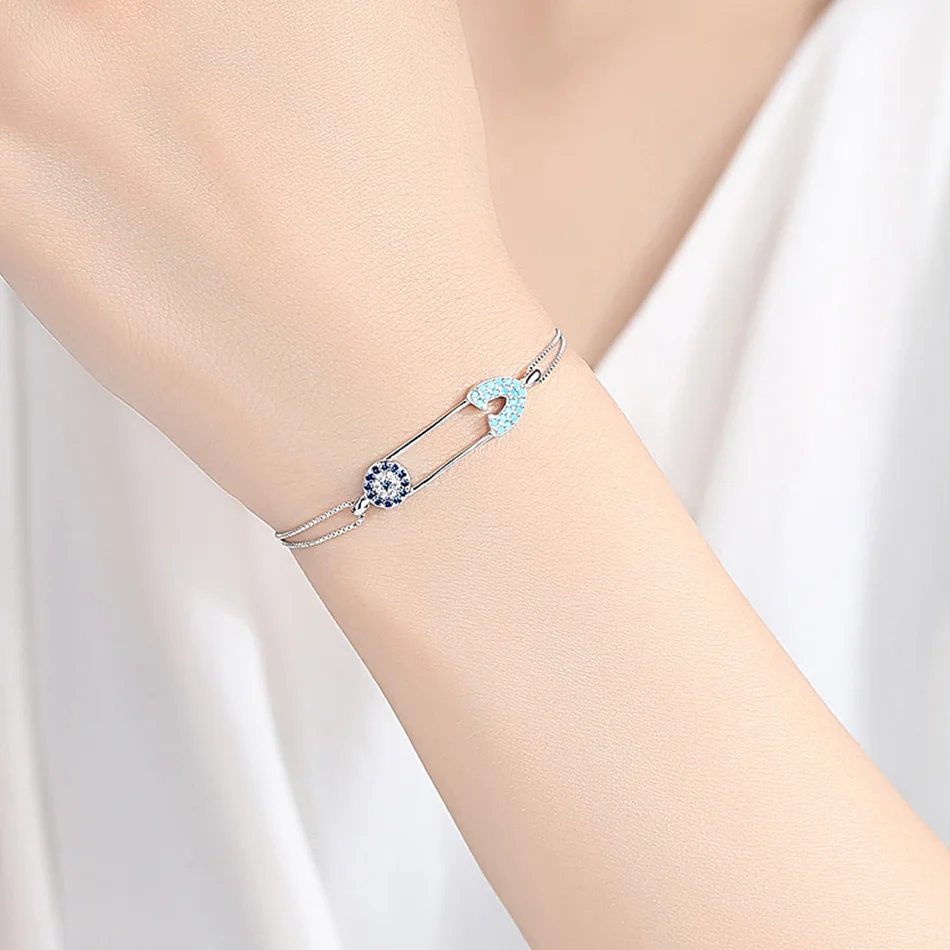 ELESHE Fashion New 925 Sterling Silver Lucky Eye Bracelets with Blue Zirconia Stone Women Bracelet Silver 925 Adjustable Jewelry