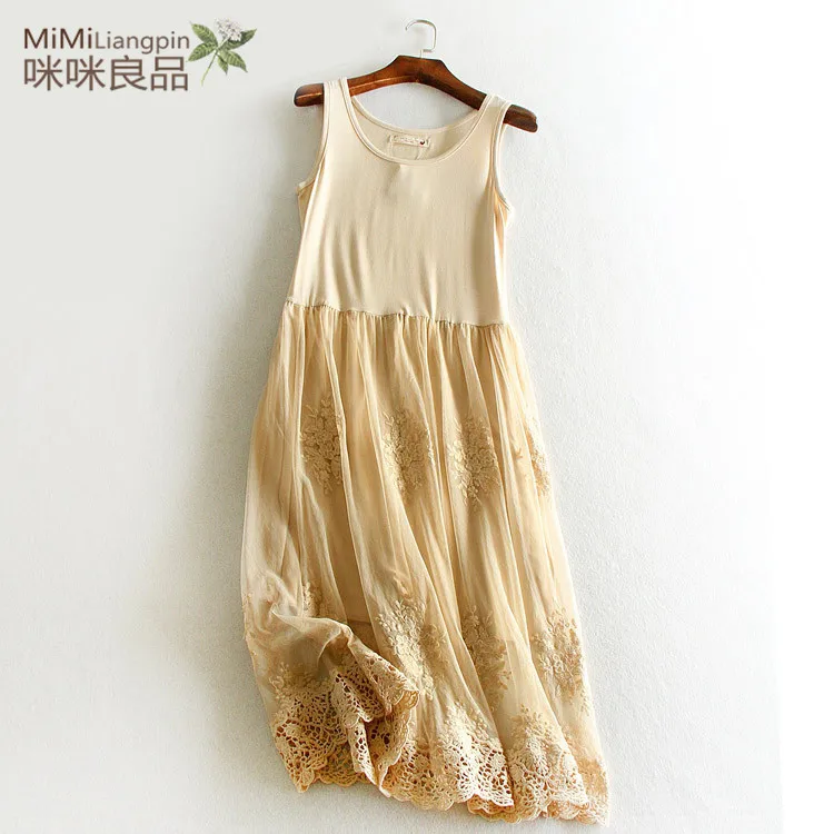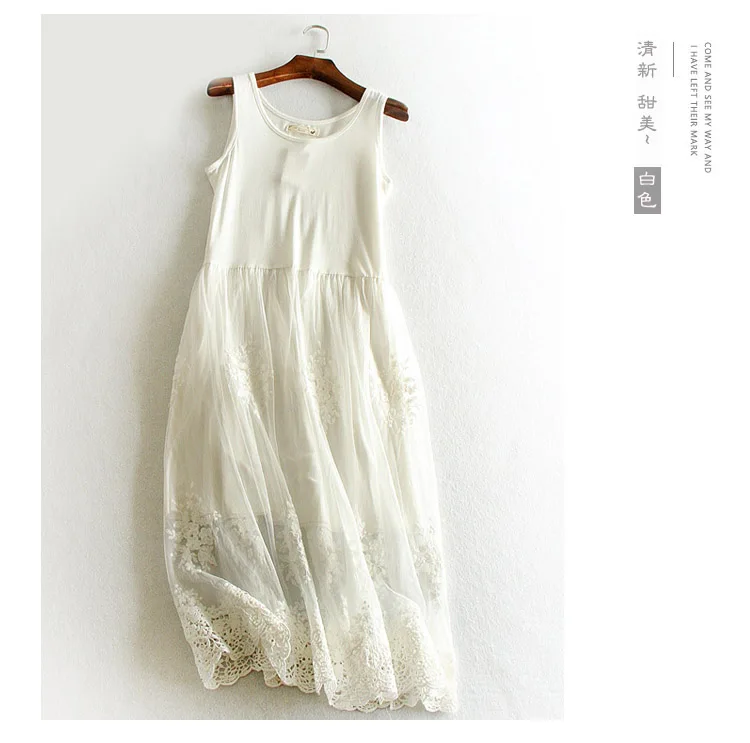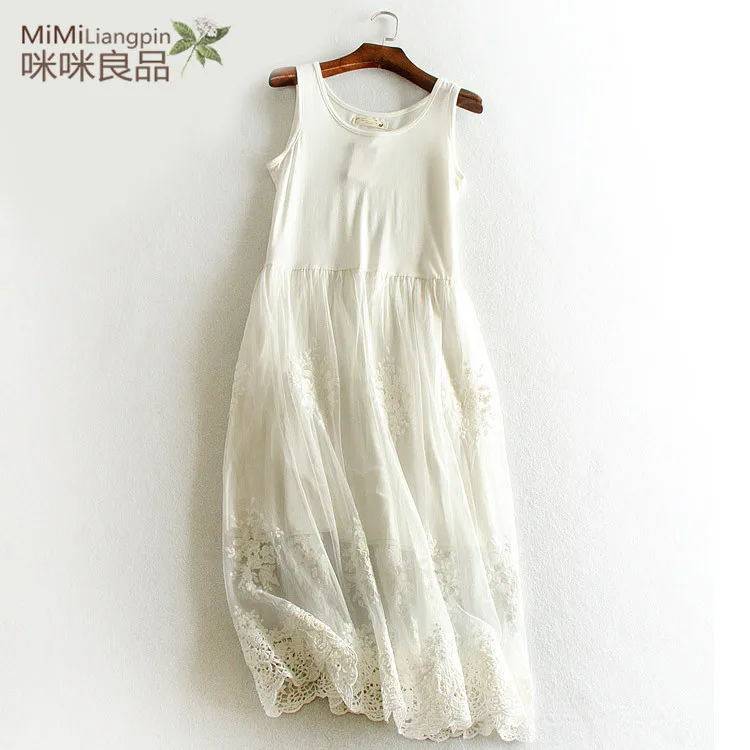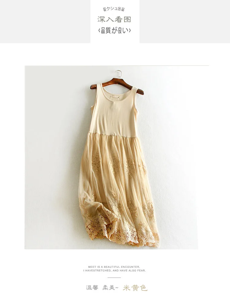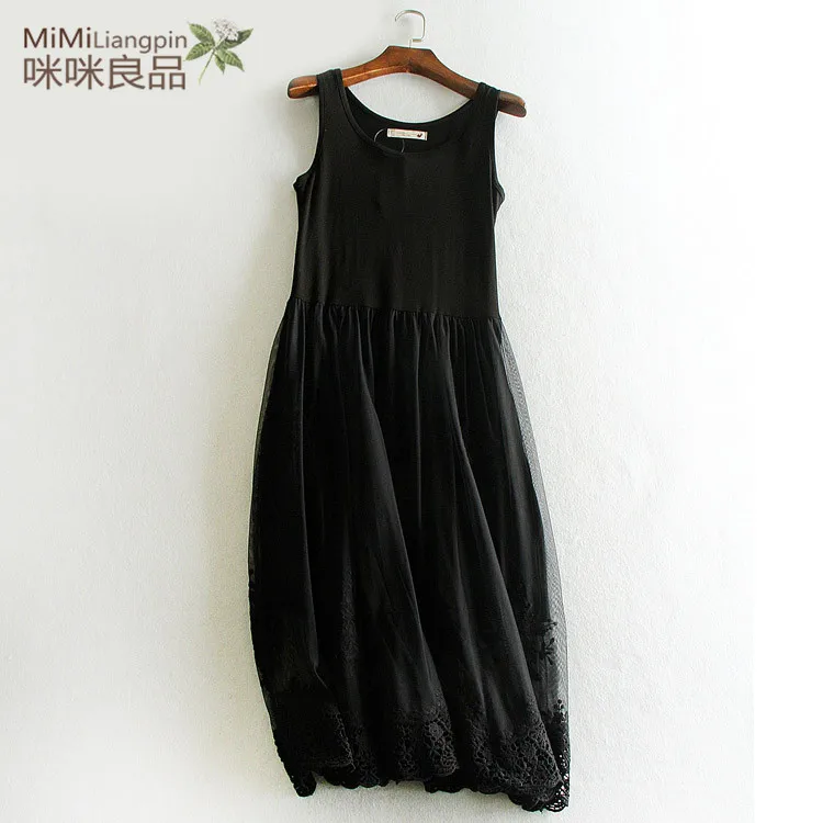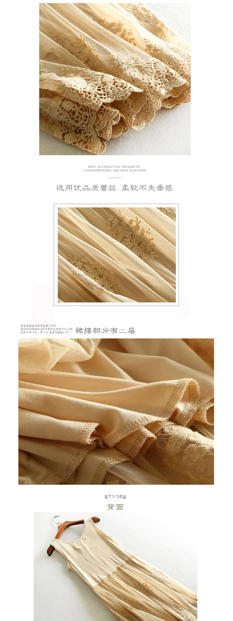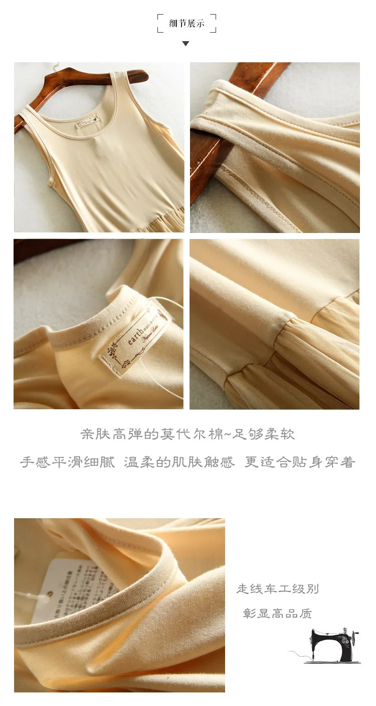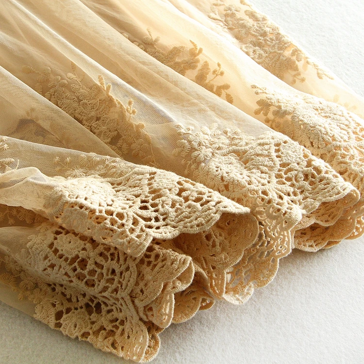 Embroidery floral lace inner underskirt vest dress medium long loose gauze double layer elastic petticoat autumn and winter