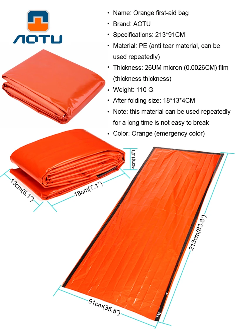 Emergency Sleeping Bag Orange Thermal Reflective Survival Blanket Ultralight Outdoor Body Heat Retention Emergency Tool