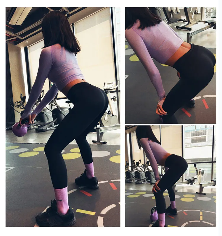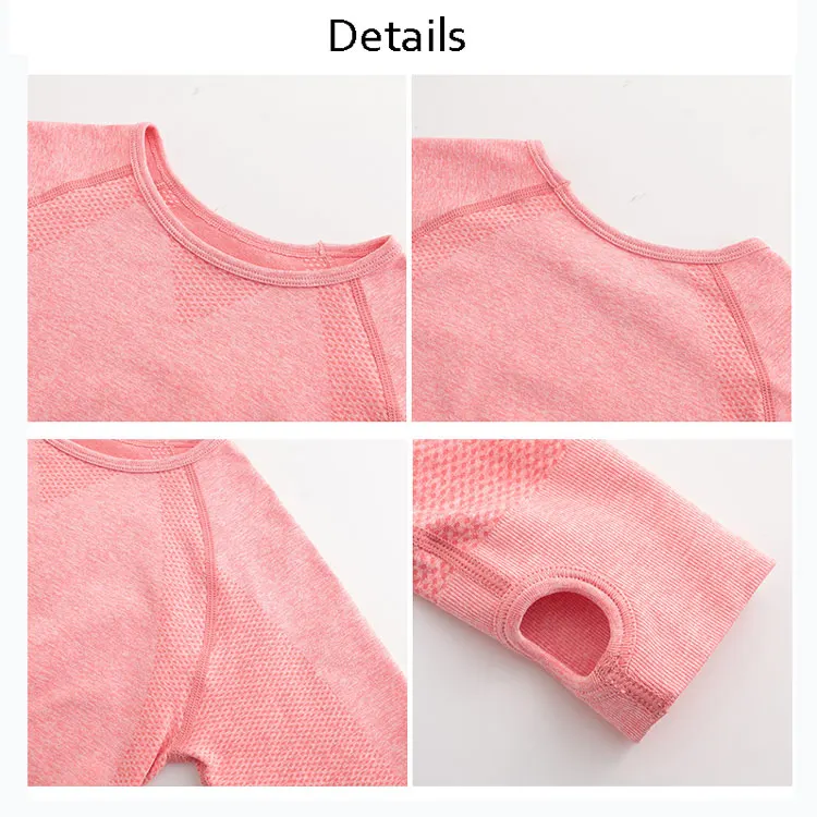 Energy Seamless yoga shirts for women fitness Pink yoga top long sleeves workout gym crop top sexy gym shirt with thumb hole