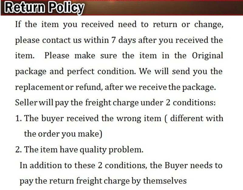 If for any reason you would like to exchange your product, perhaps for a different size in clothing. You must contact us first and we will guide you through the steps.