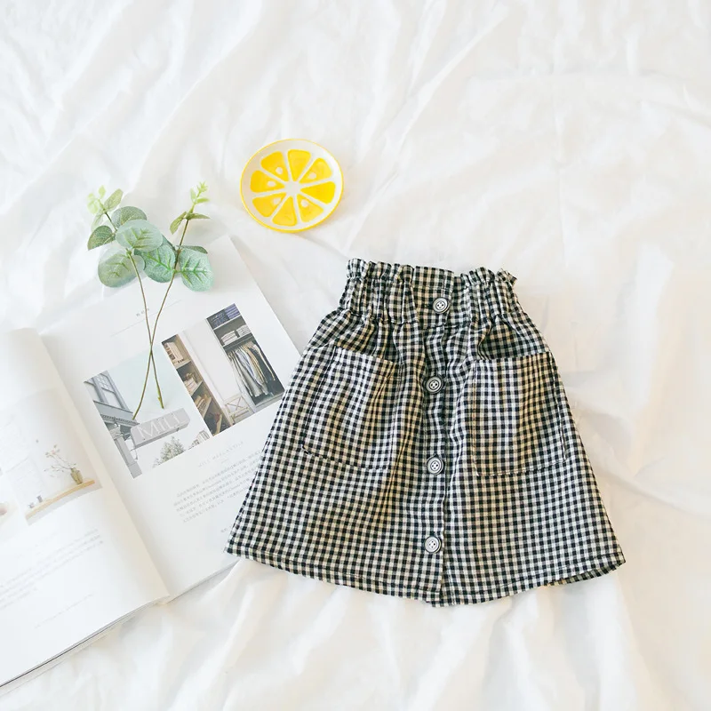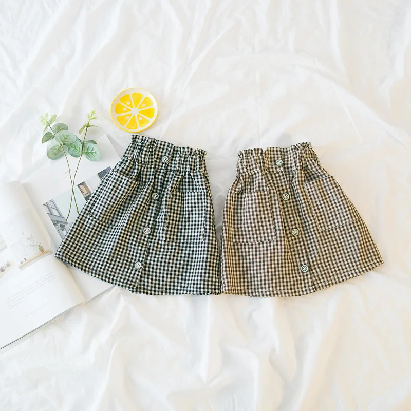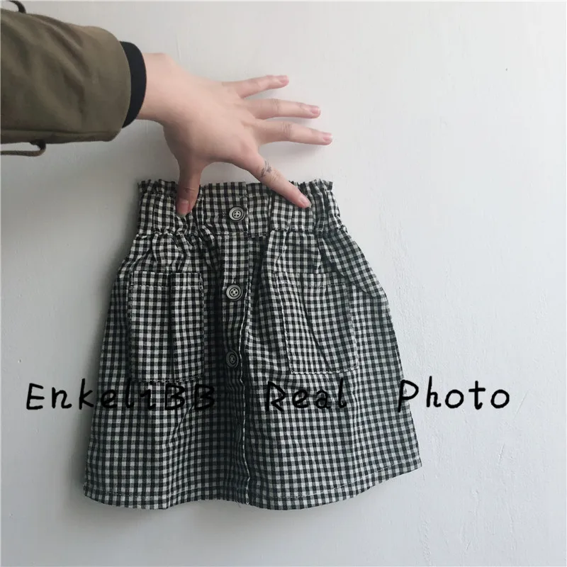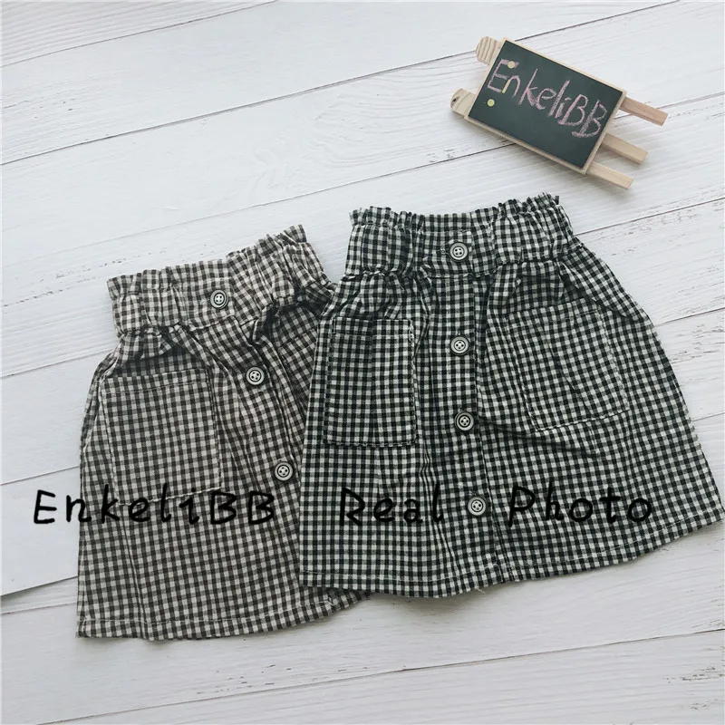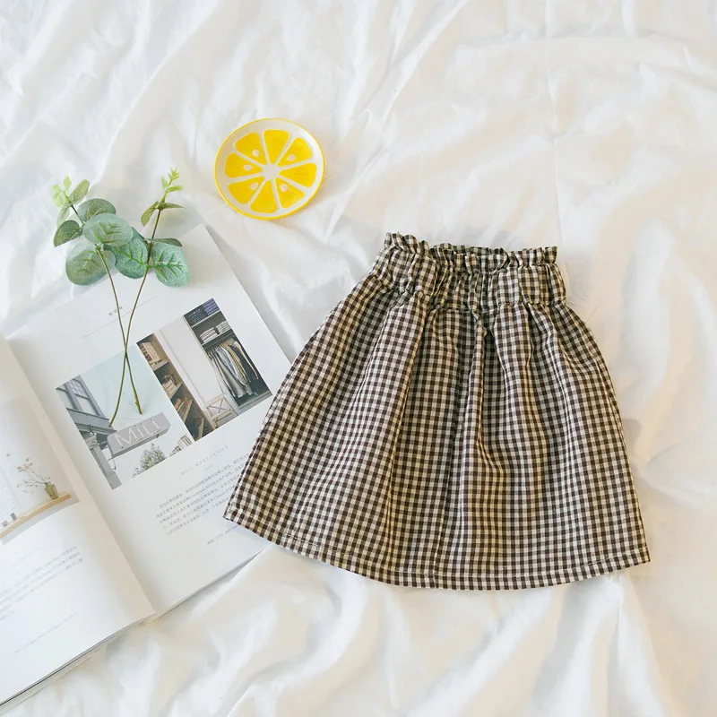 EnkeliBB Children Plaid Skirt In Summer and Spring Toddler Girls Vintage Style Clothes Baby High Waist Skirts Girls Korean Skirt