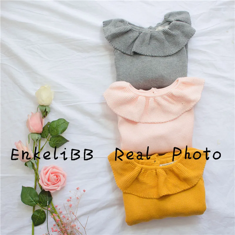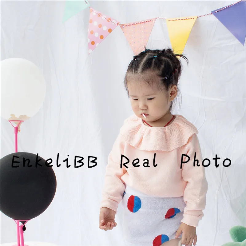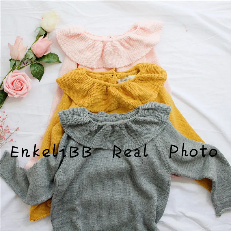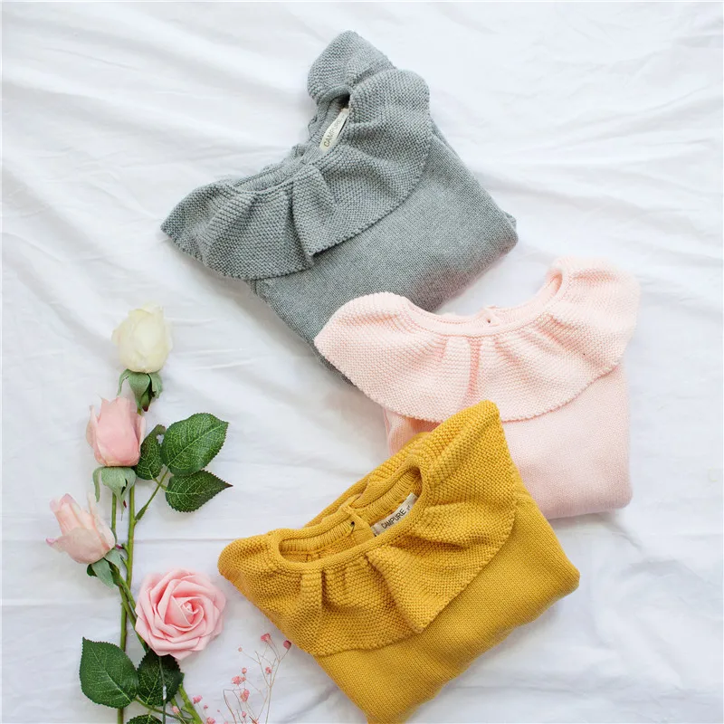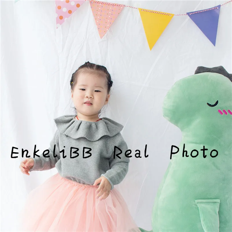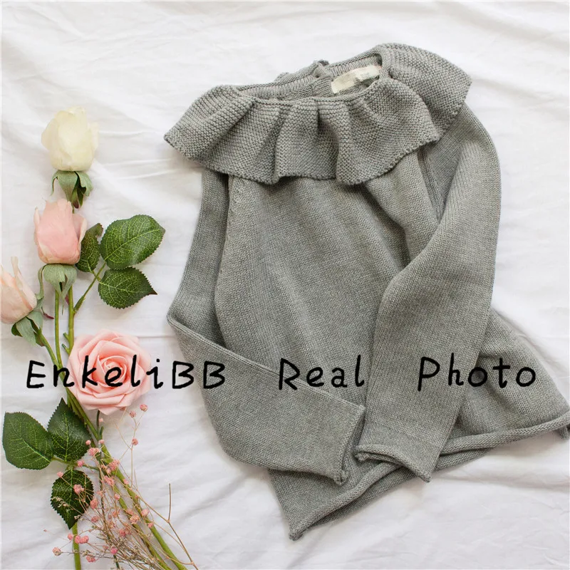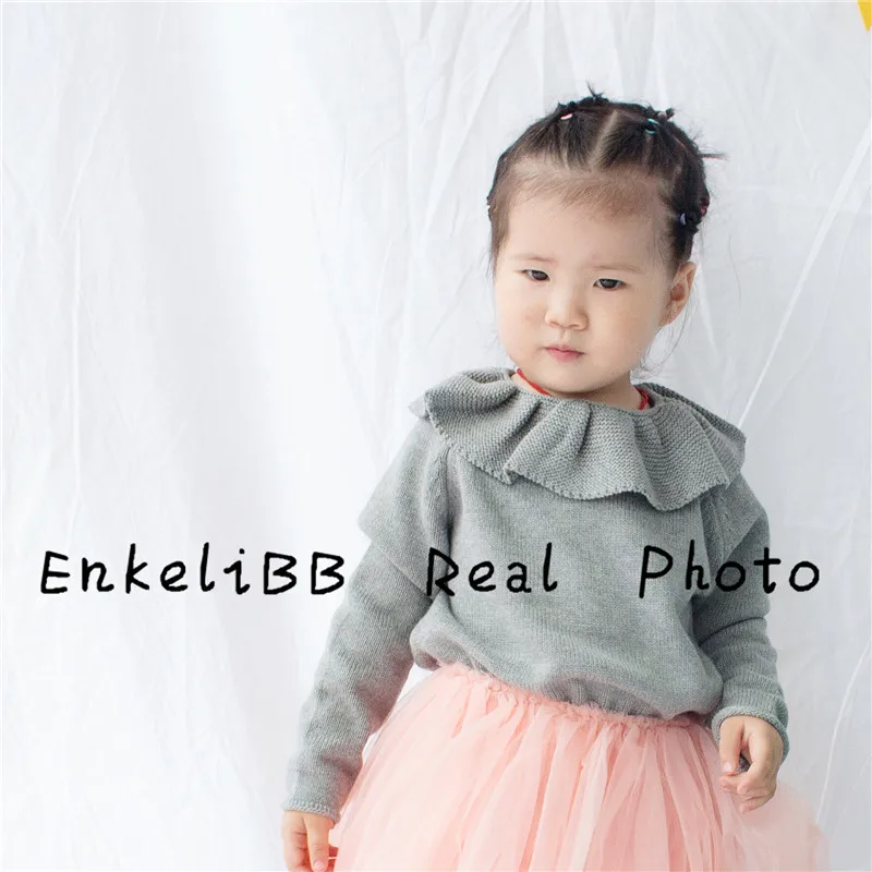 EnkeliBB Cute Solid Ruffle Collar Sweater Kid Winter Warm Sweater Toddler Girls Korea Style Long Sleeve Crochet Tops