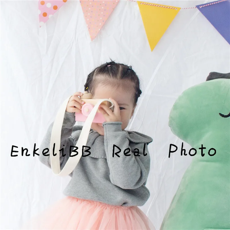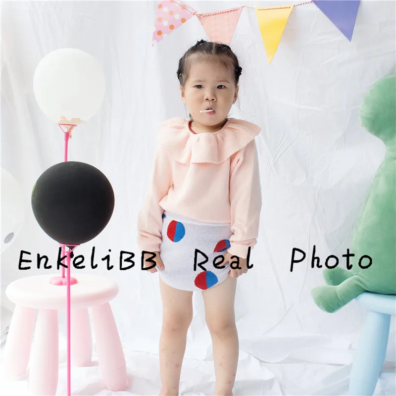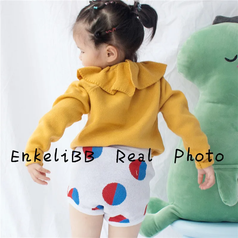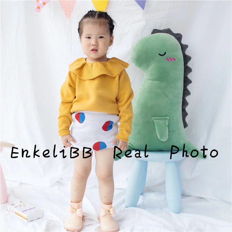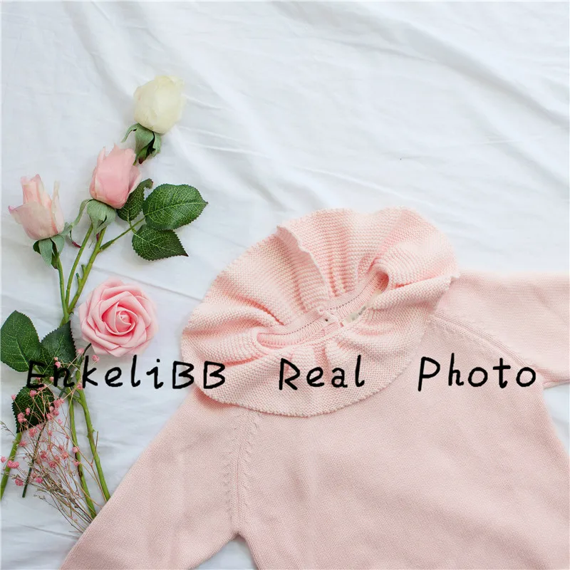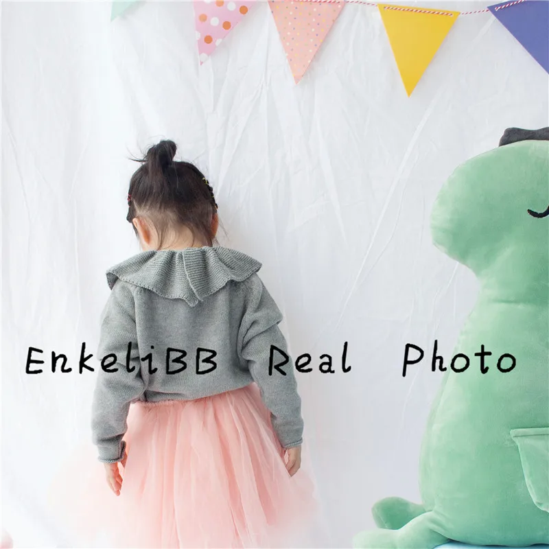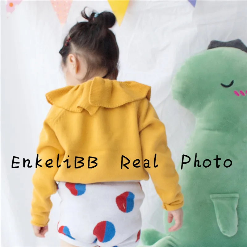 EnkeliBB Cute Solid Ruffle Collar Sweater Kid Winter Warm Sweater Toddler Girls Korea Style Long Sleeve Crochet Tops