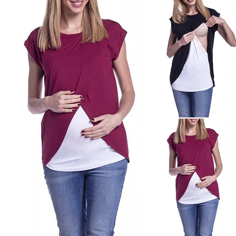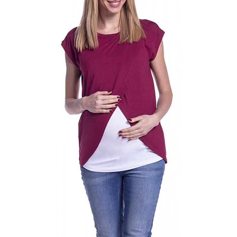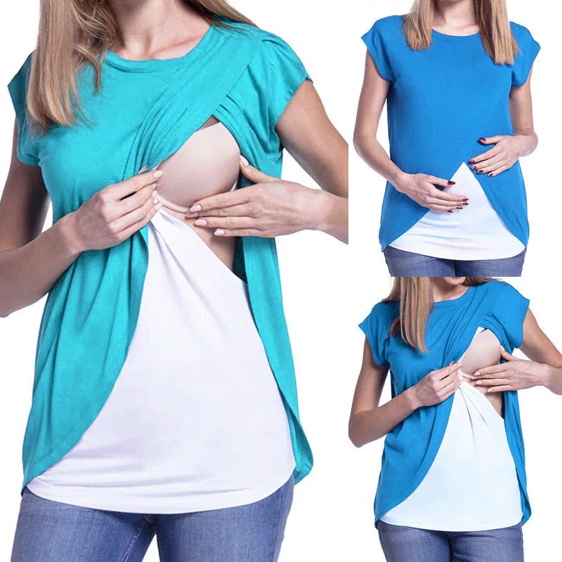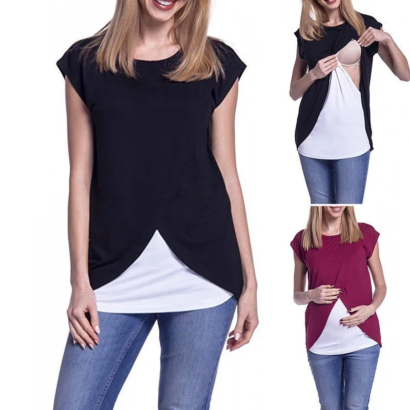 Envsoll Breastfeeding Clothes NursingTops Pregnancy Clothes for Pregnant Women Summer Short Sleeve Maternity Nursing Clothes