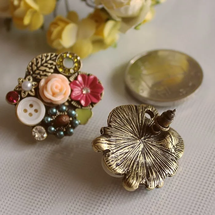 ENZE Fashion stud earrings New fashion and pure and fresh quietly elegant contracted secret garden lady’s pearl earrings