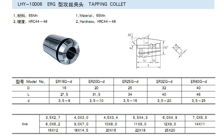 ER25 collet size Square drive for rigid tapping Available for 3.5mm to 16.0mm tap shanks