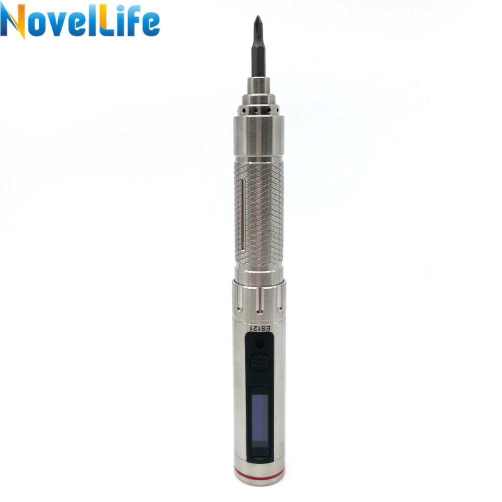 This is the ES121 whole set including ES121 small power screwdriver, ES-A7 and ES-B7 screw driver bit set,portable pouch and coustomized high quality USB charging cable.ES121 is equipped with 1:64 reduction gear motor(ES120 is 1:144) ensure larger rotation speed up to 380 RPM load-free(ES120 is 170RPM) .Slim 304 stainless steel housing with pen shape design,powered by 300mAh lipo battery with 30 minutes working time continuously at full load. It is equipped with SMT32 MCU and 3-axis gyro supporting motion control enable the user to screw or unscrew just by a thumb slight moment, so intelligent and convenient. 16X96mm OLED display the working status and standard 4mm diameter socket compatible most most precision screwdriver bits.Come along with a portable pouch enable you to easy to store and carry the screwdriver and the bits, a great helper for electronic reparing projects