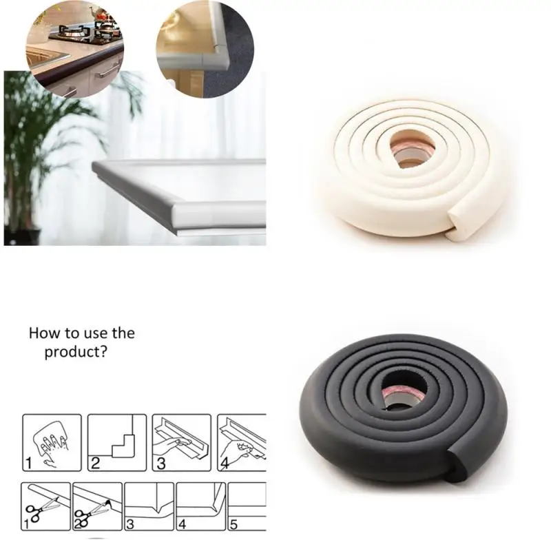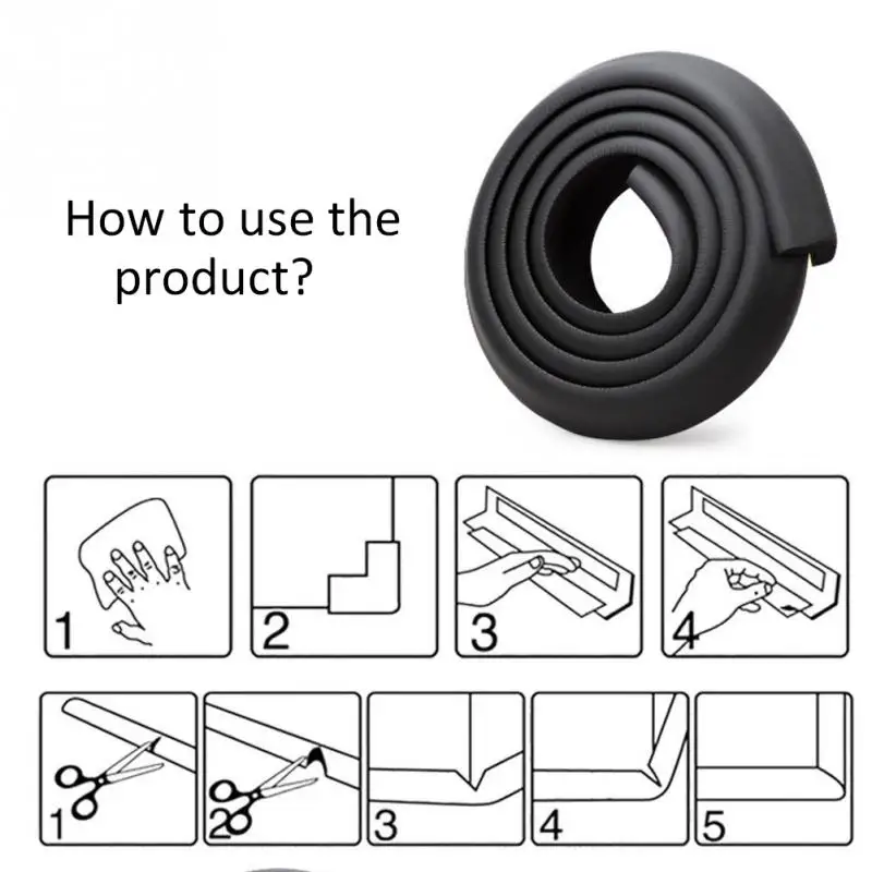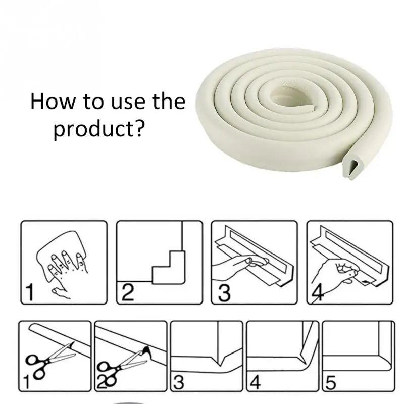 Essential Home High Elastic 2M NBR Foam Kids Safety Table Corner Softener Cushion Strip Double-sided Adhesive Guard Protector