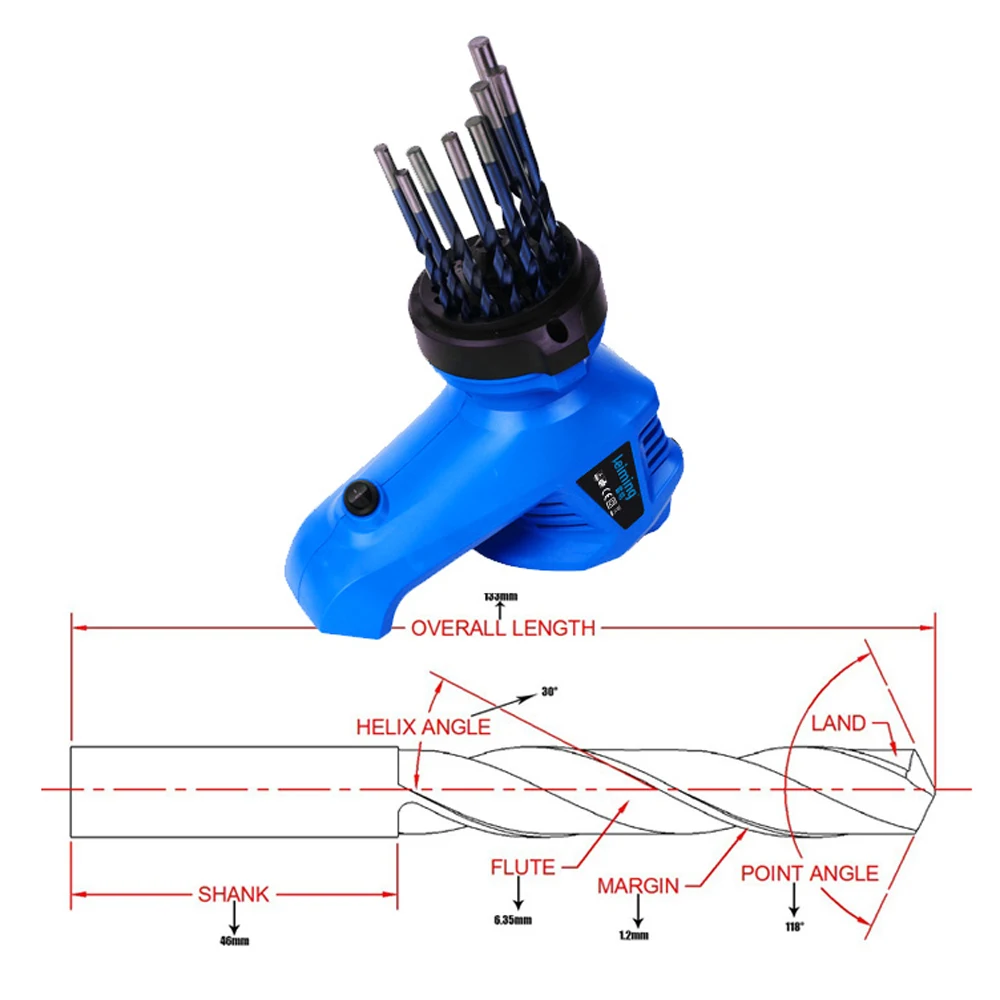 1. Grinding bit size: (3.0, 3.5, 4.0 … 11.0, 11.5, 12.0) 0.5 interval, only ordinary twist drill. Cobalt alloy drills are available in another machine inthe shop.