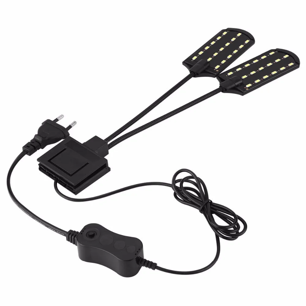 EU Plug Adjustable 1/2 Head White Light 10W High Brightness Aquarium Fish Tank Clamp LED Light Clip Water Plant Grow Lamp