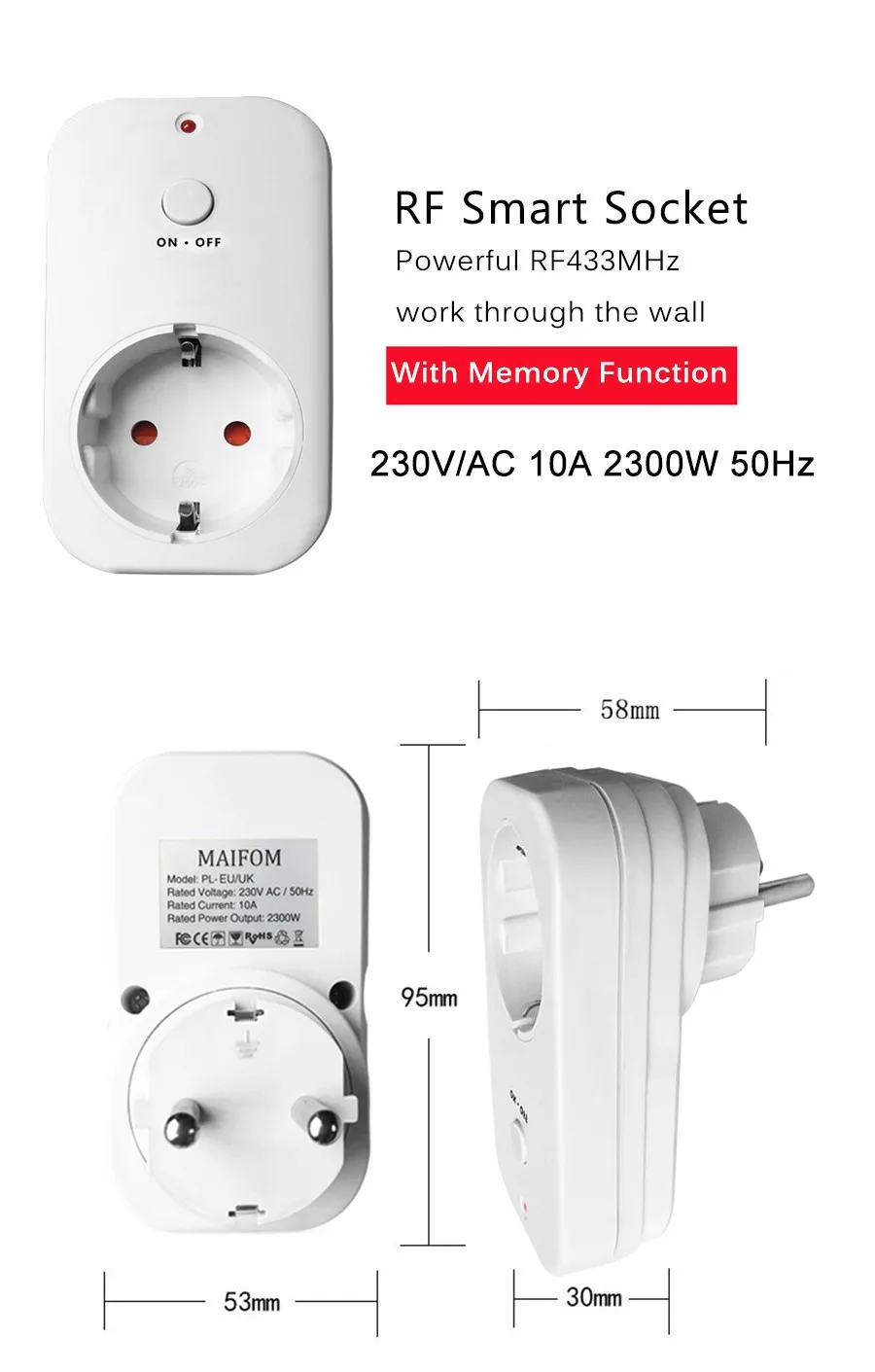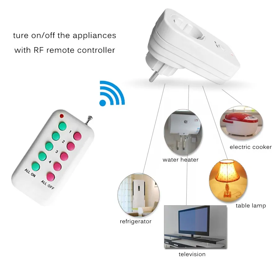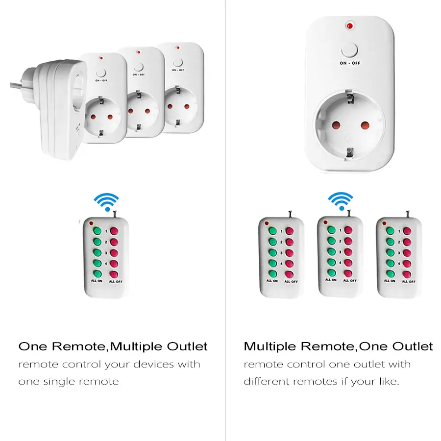 EU Plug RF Wireless Control EU Socket Wall Plug Power Outlet RF433 Remote Control Turn On/Off Home Appliances Smart Home 110-240V/AC