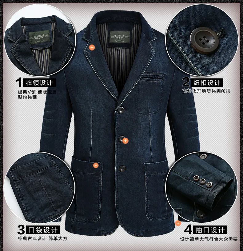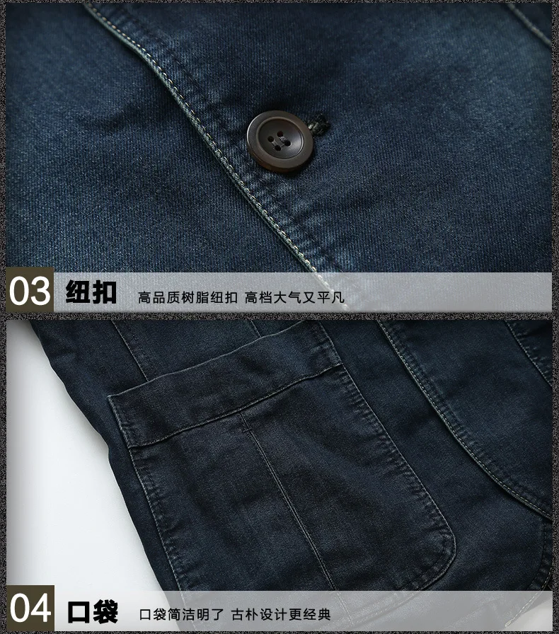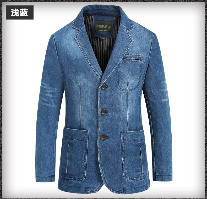 Europe and the United States the new men’s fashion casual denim loose-line patch pocket suit jacket M-4XL AL7837
