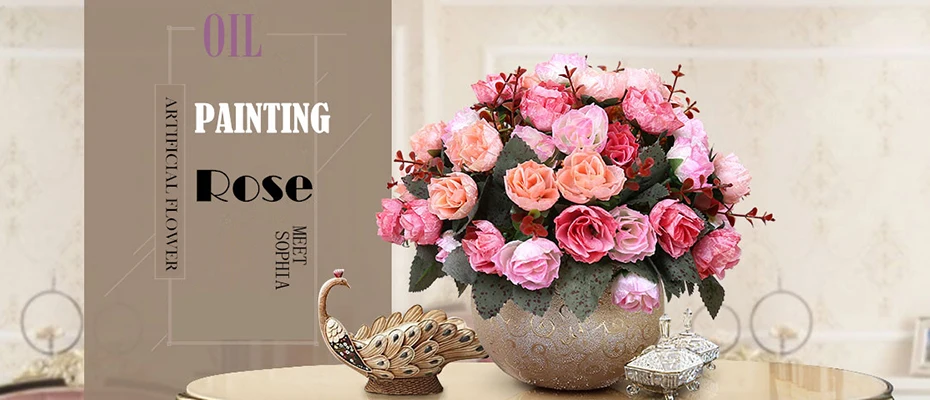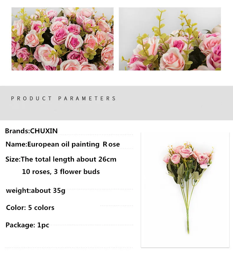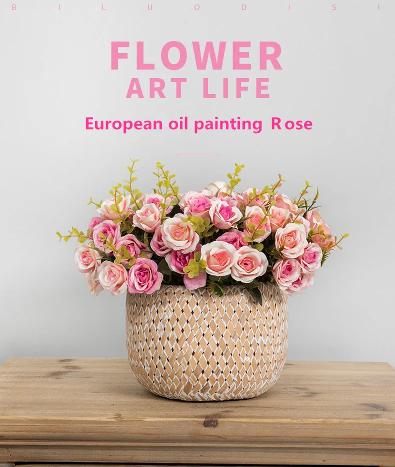 European 10 mini simulation oil painting roses wedding table flower road guide home decoration artificial flower birthday gift