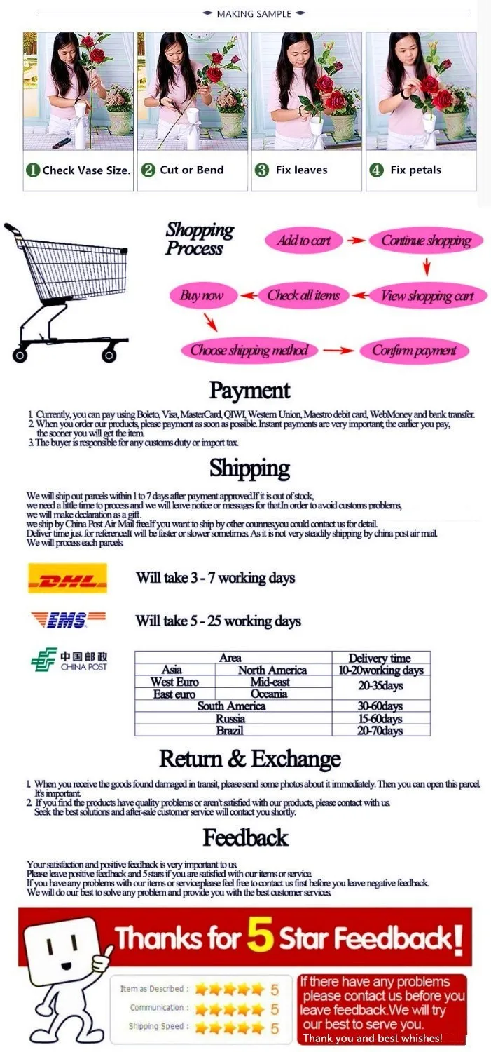 *Other description: Because every branch is too long, we will bend them for package. When you receive the product, straightened it! It won’t affect the appearance! Maybe little flower drop off for delivery, just plug on to the branches.