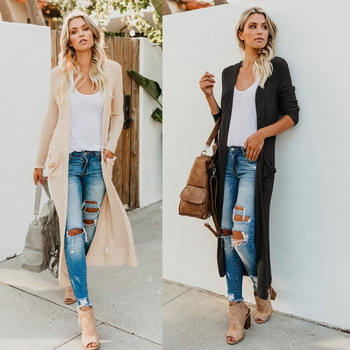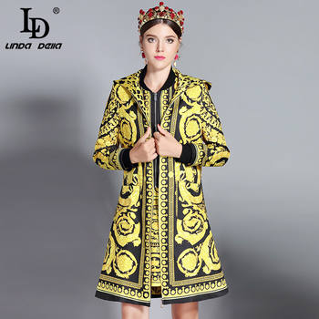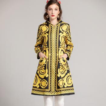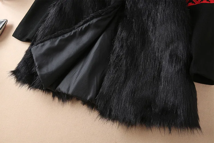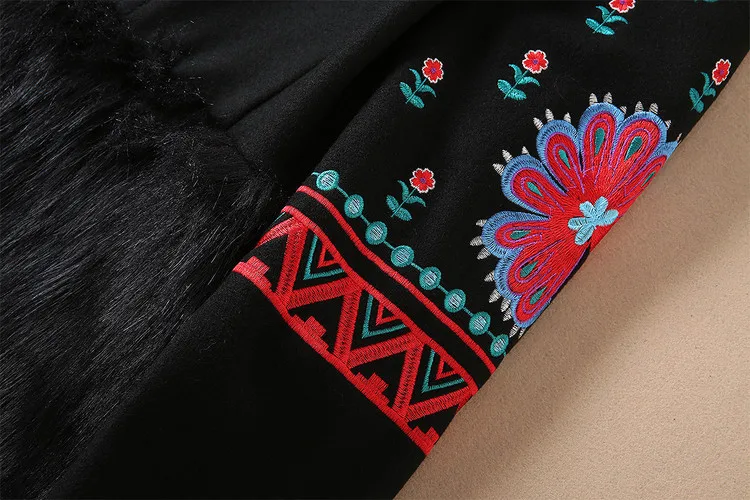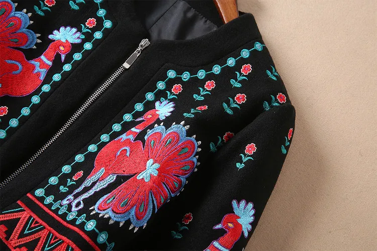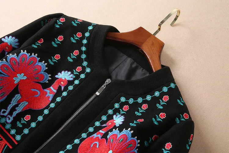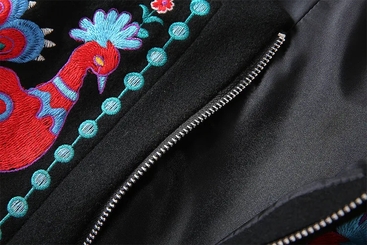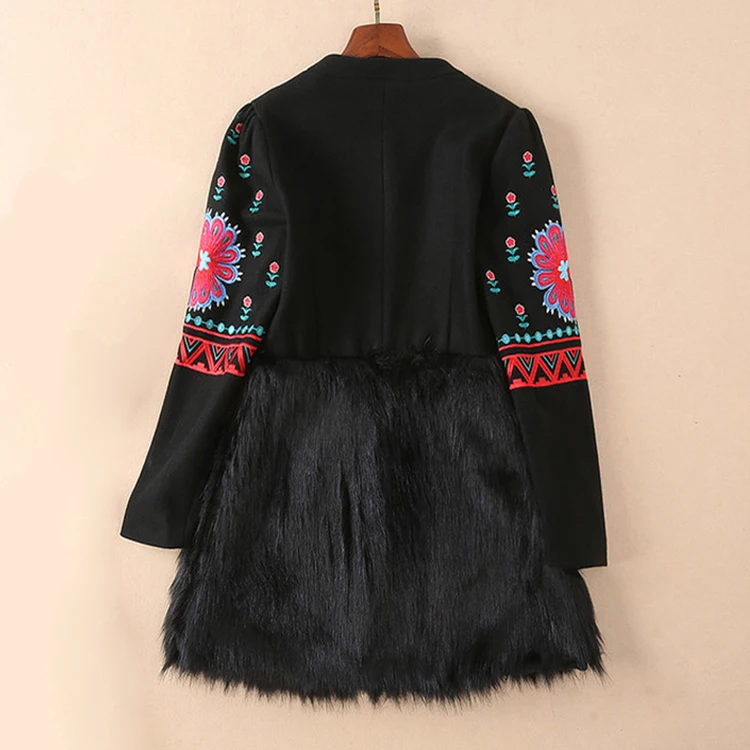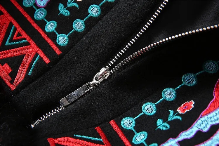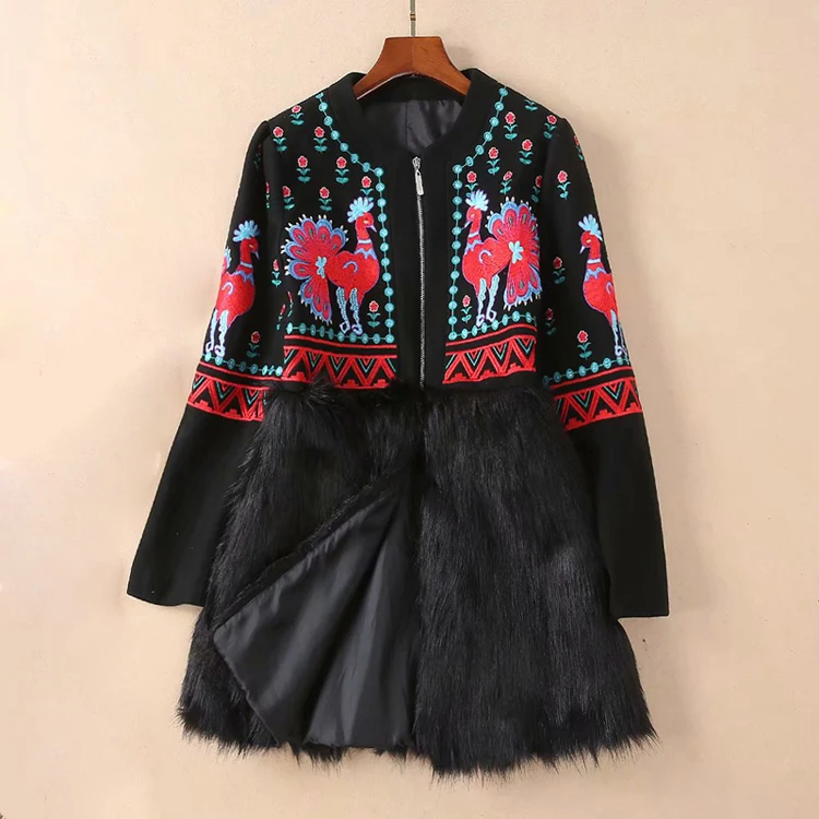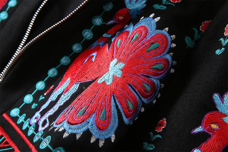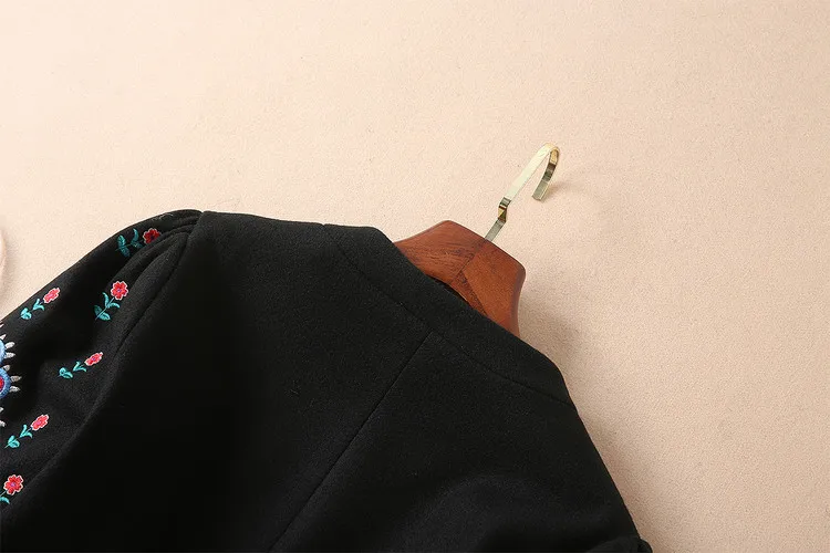 European 2018 Autumn And Winter New Women Outwear Round Neck Collar Long Sleeves Heavy Embroidery Patchwork Black Coat Trench