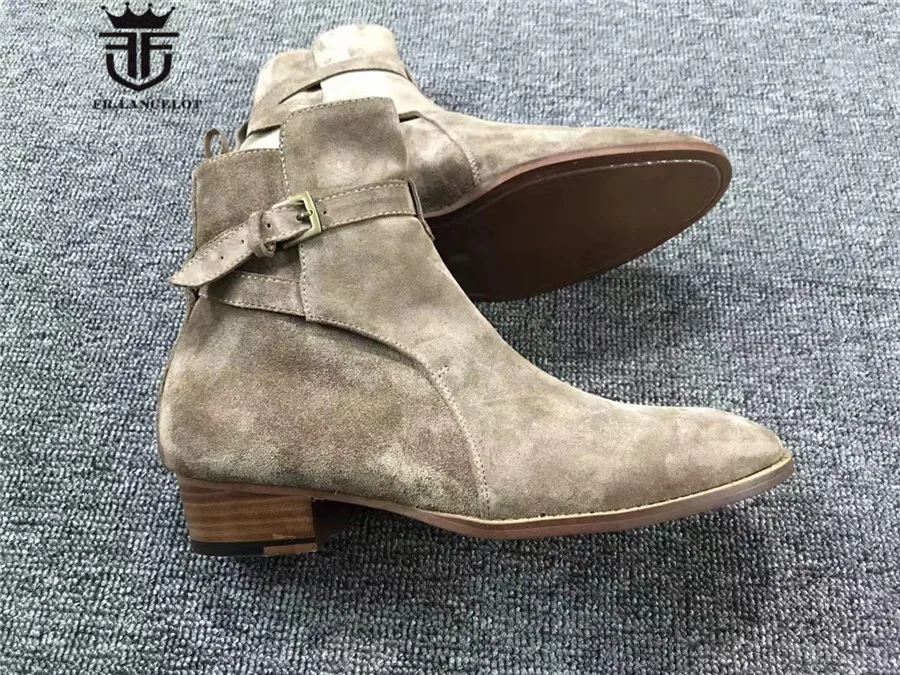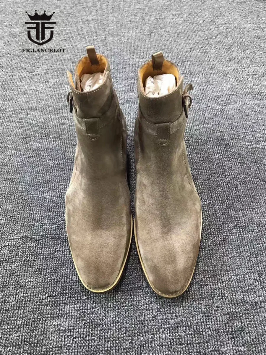Exclusive Handmade Buckle Strap wedge top quality suede leather MID Martin Men’s Boots Wedding Parting Denim causal Boots