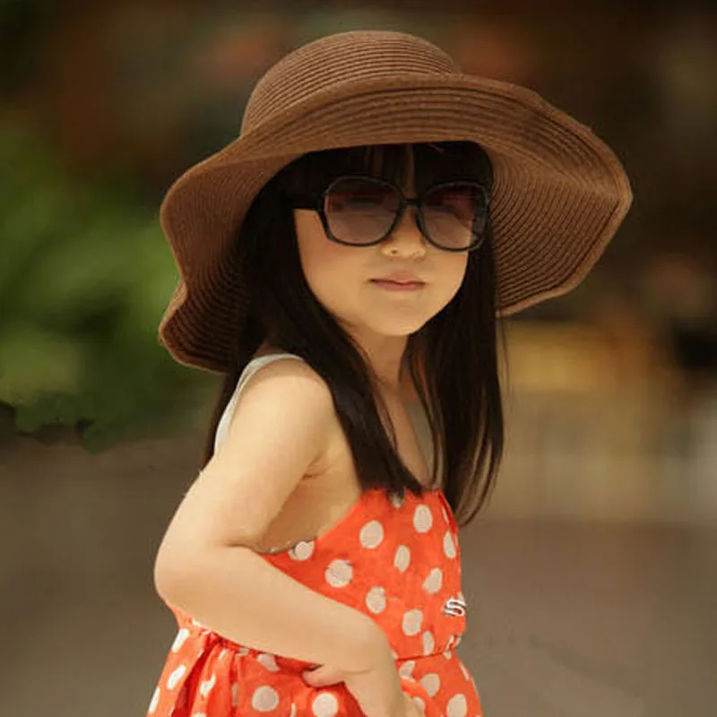[EXILIENS] 2017 New Fashion Summer Brand Children’s Sun Hats Girl Cap Beach Straw Pendant Top Kid Big Brim Shade Sunscreen Girls