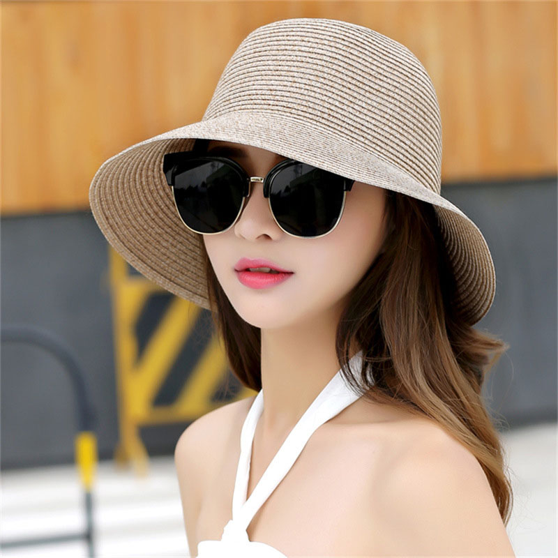 EXILIENS 2018 New Lady Fashion Summer Hat Brand Women’s Sun Hats Woman Cap Casual Straw Foldable Big Brim Shade Sunscreen Girl