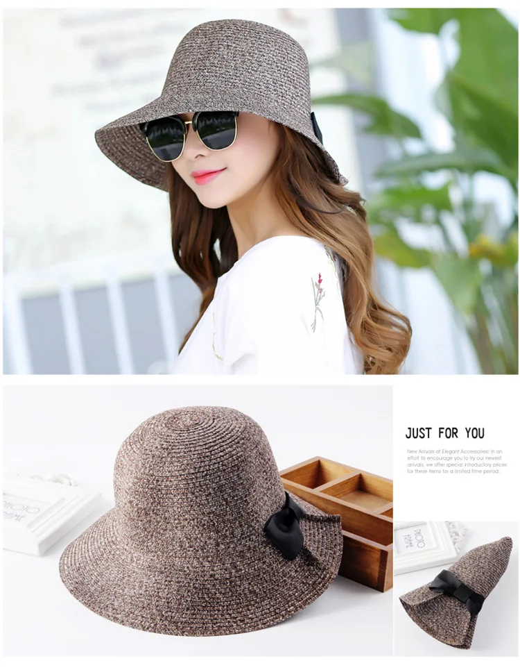 EXILIENS 2018 New Lady Fashion Summer Hat Brand Women’s Sun Hats Woman Cap Casual Straw Foldable Big Brim Shade Sunscreen Girl