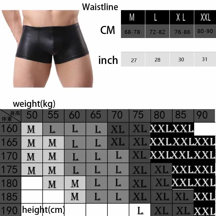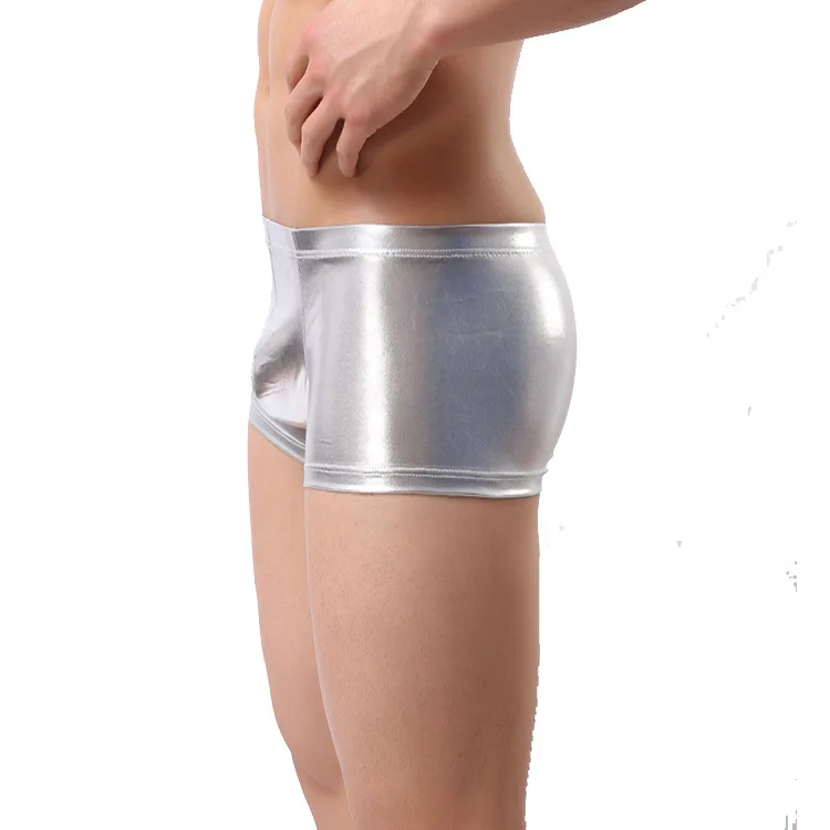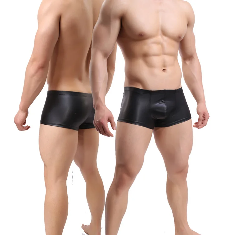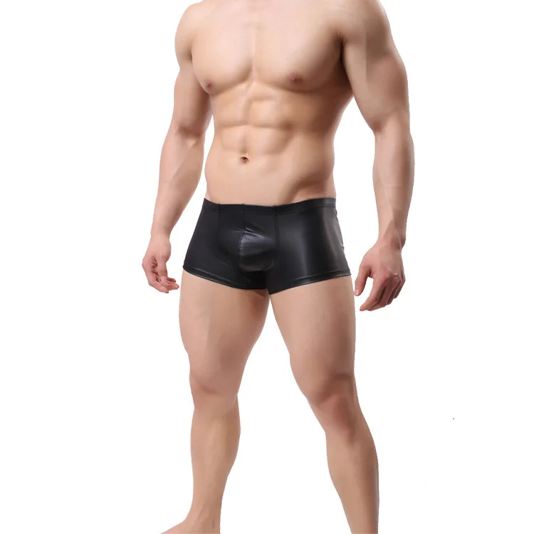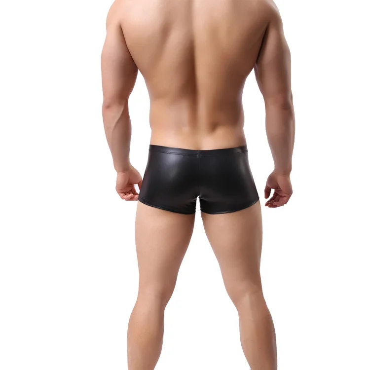 [EXILIENS] Nightclub Hot Underwear Men’s Shorts Boxers Sexy Patent leather Solid Top Male Brand Man Underpants GAY Size M-XXL