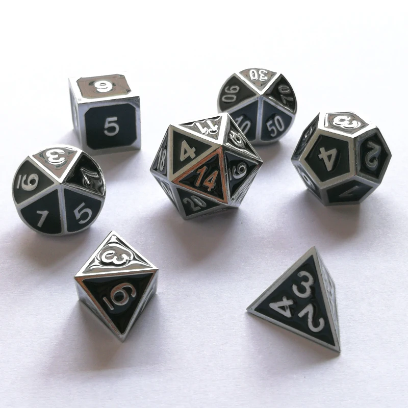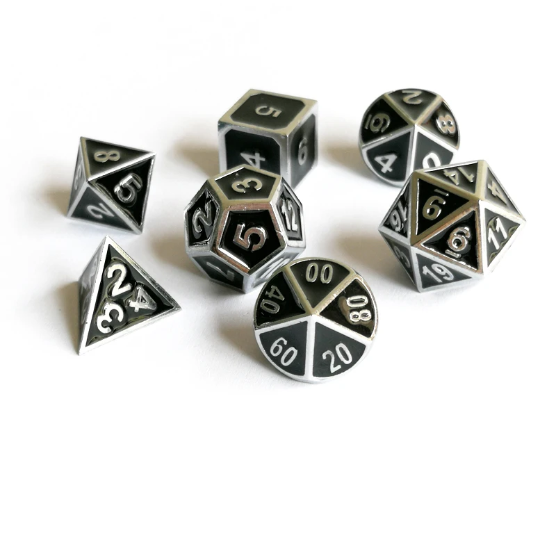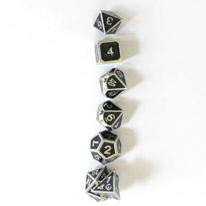 Factory exports new font and dungeons & dragons 7 PCS /set creative RPG dice d&d metal dice chrome black