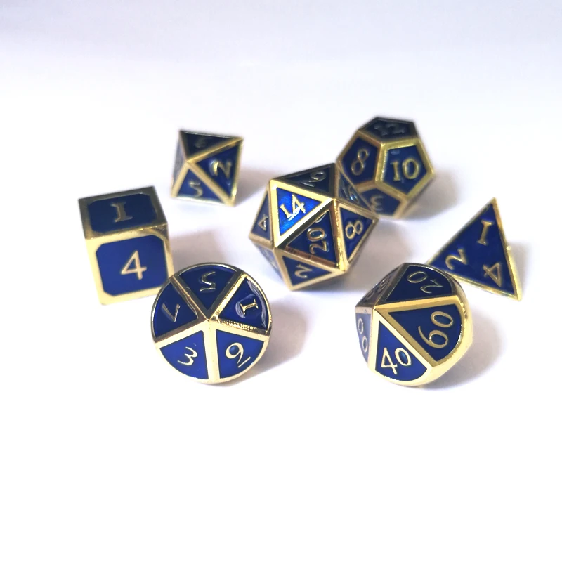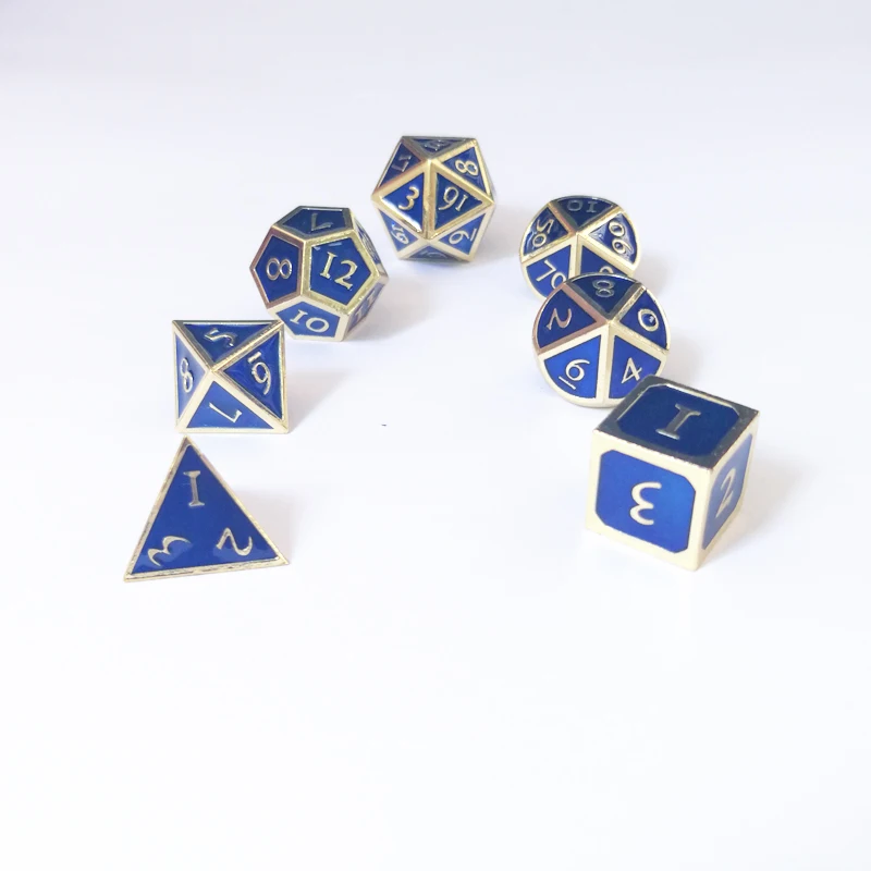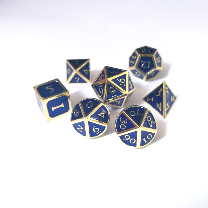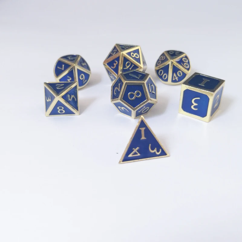 Factory exports new font dragon and dungeons 7 PCS /set creative RPG dice d&d metal dice imitation gold sapphire blue