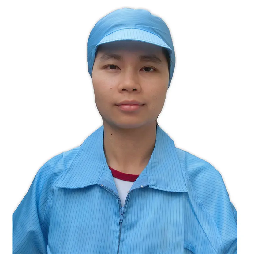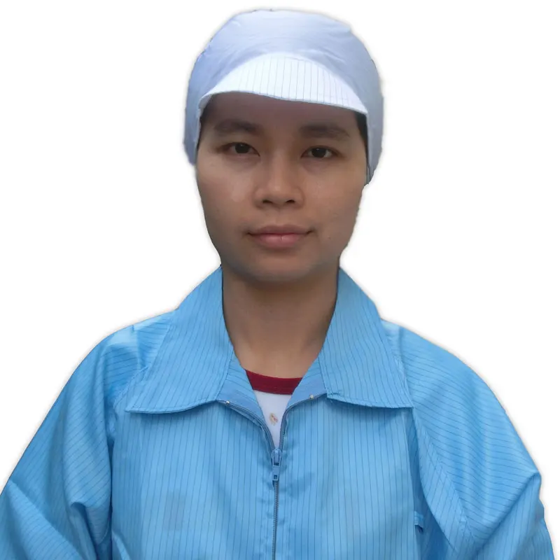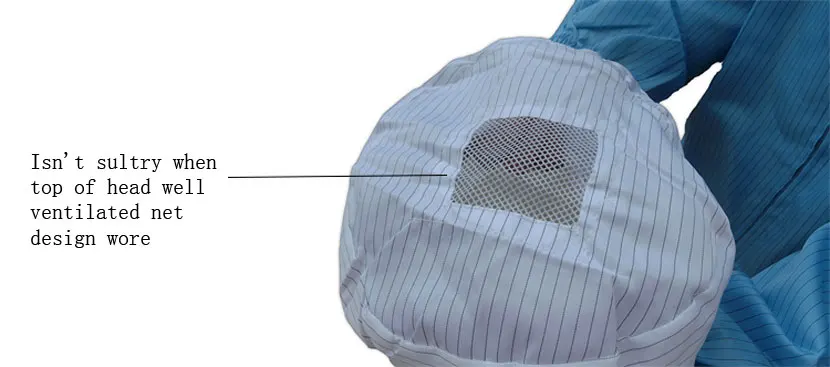 Using special polyester filament and high performance permanent conductive fiber by special weaving process, made by this kind of fabric through the special sewing process of clean clothing has excellent and lasting anti-static dustproof performance, can effectively release human body electrostatic charge. Clean silk fabric density is greater than the ordinary silk fabric, lint free, non pilling, fibre shedding, no dust, not through the dust, good air tightness, reached the international standard.