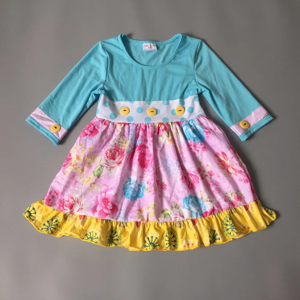 Summer autumn middle sleeve Cotton Baby Girls Outfits Infants And Children flower ruffled Ruffle Dress for kids girls dressesUSD 9.25/piece
