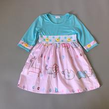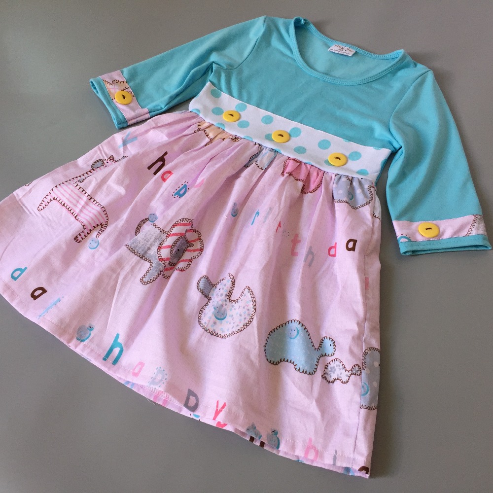 Blue stripes Elephant design Ruffle Full sleeves style Summer with Flower trim and pocket Baby Girls Dress for present USD 30.00/piece Product Description