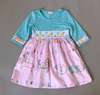 Blue stripes Elephant design Ruffle Full sleeves style Summer with Flower trim and pocket Baby Girls Dress for present USD 30.00/piece Product Description