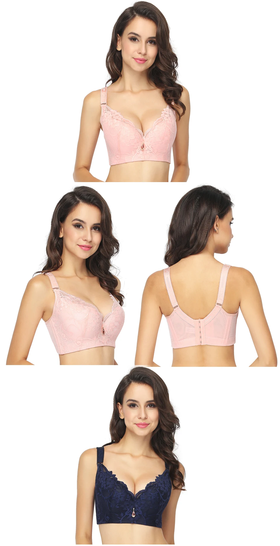 FallSweet Lace Bra Push Up Bra C D Cup Plus Size Women Underwear Underwire Brassiere White Black Pink Blue 34 38 42 46 50