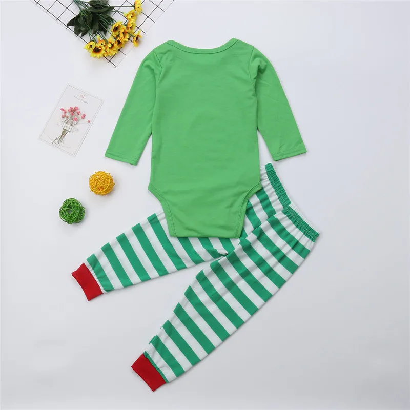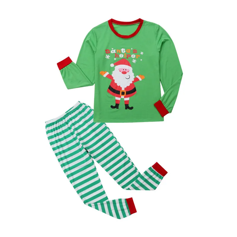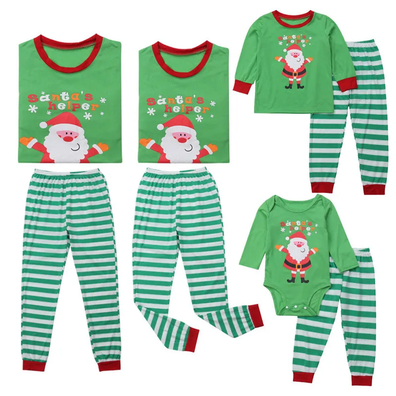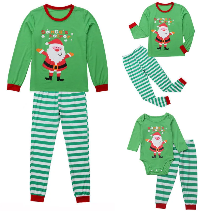 Family Matching Christmas Clothes Dad Mom Kids Pajamas Set Women Men Baby Sleepwear Printing Santa Nightwear Casual Green Outfit
