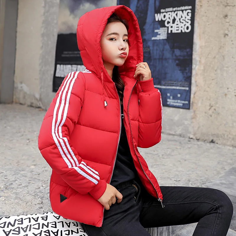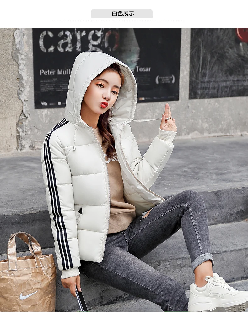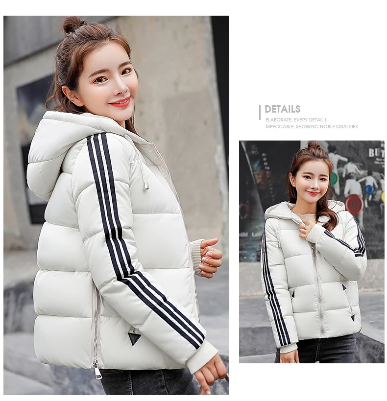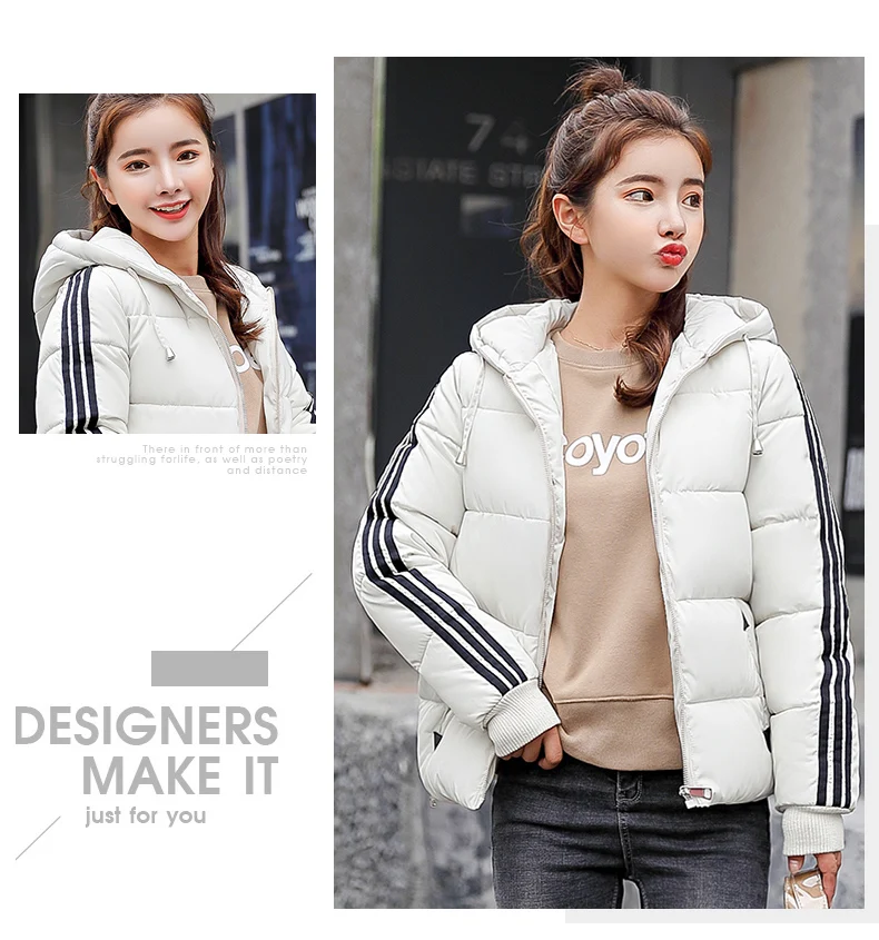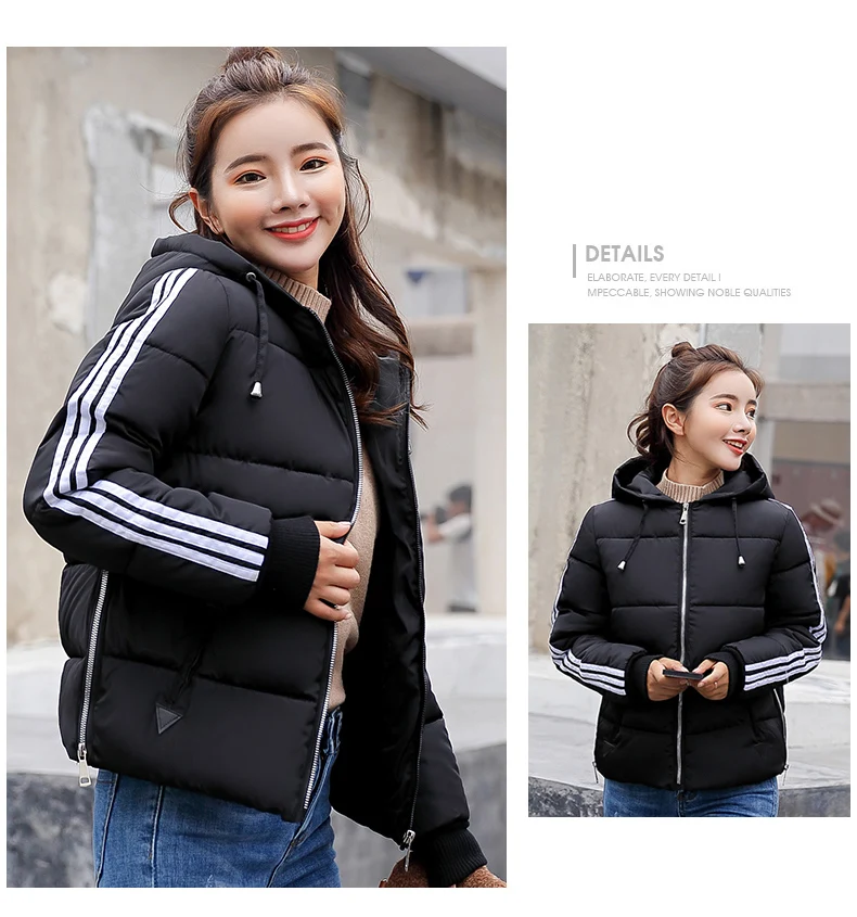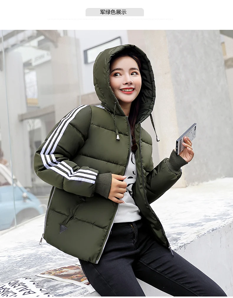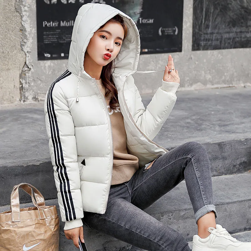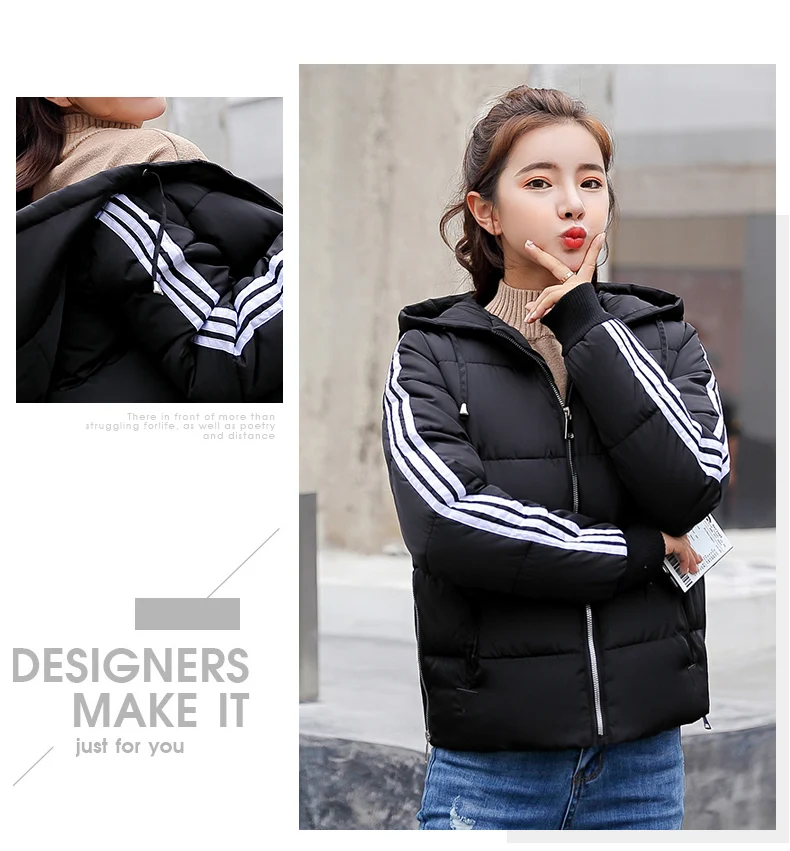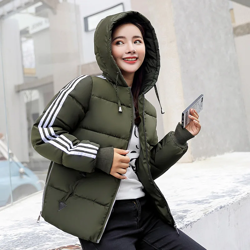 Fashion 2018 Winter New Arrival Stripped Parka Women Korean Style Hoodies Zipper Solid Full Sleeve Outwear Coat Hot Sale C89206Q