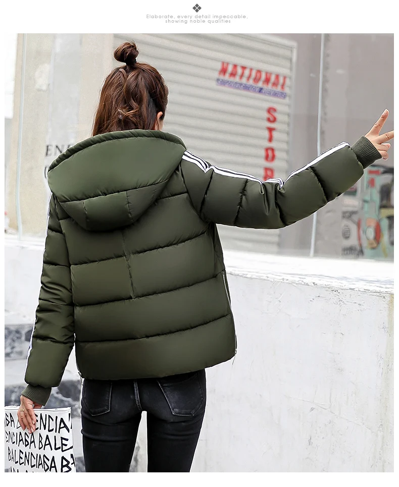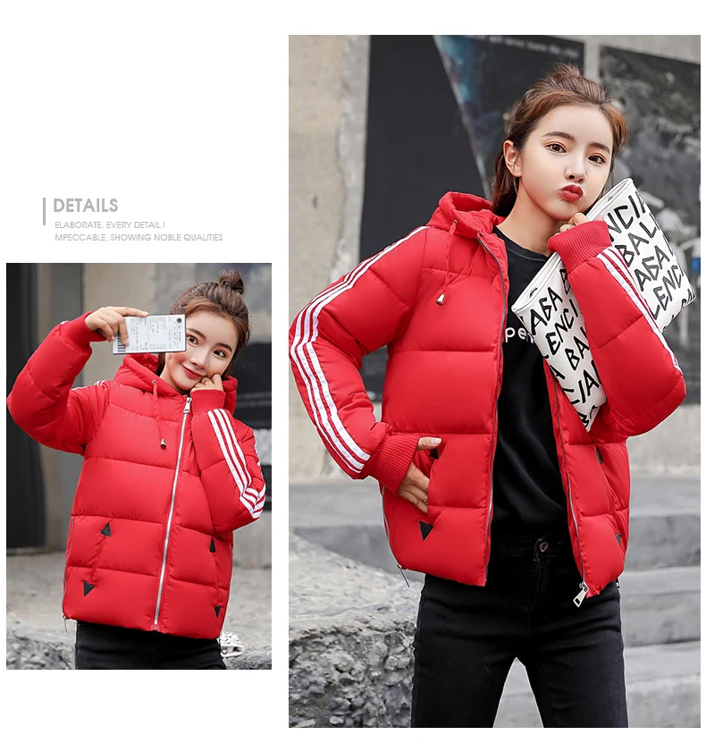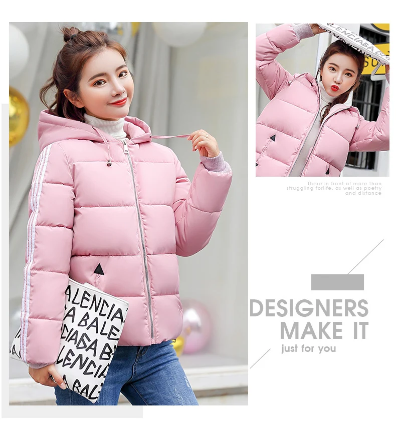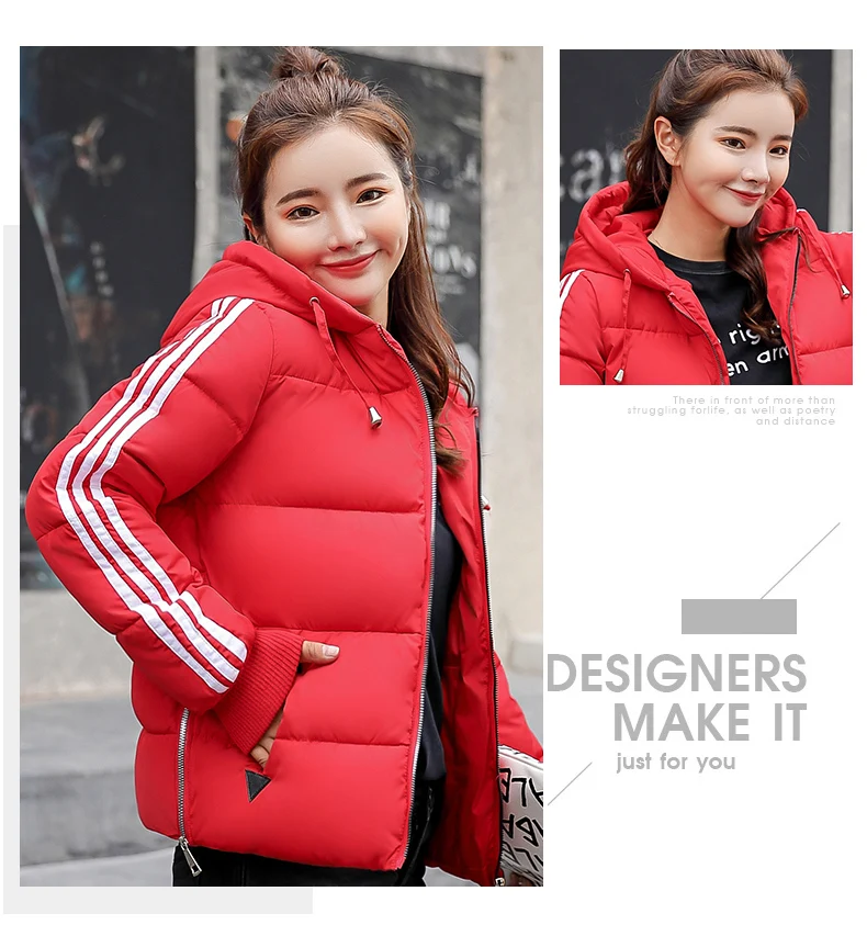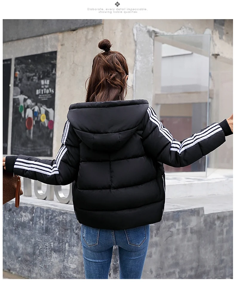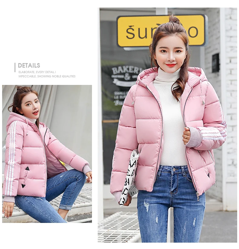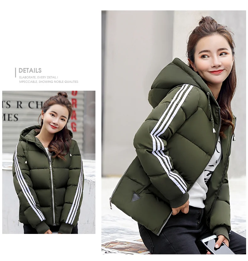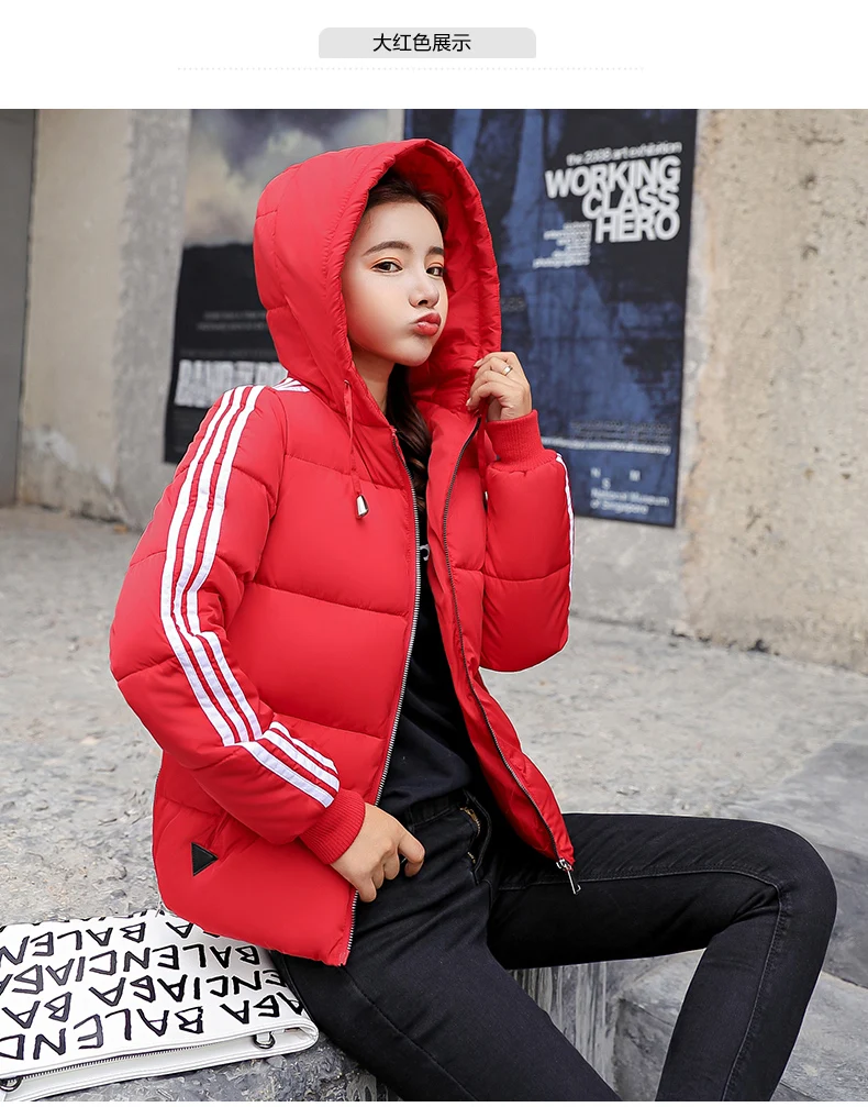 Fashion 2018 Winter New Arrival Stripped Parka Women Korean Style Hoodies Zipper Solid Full Sleeve Outwear Coat Hot Sale C89206Q