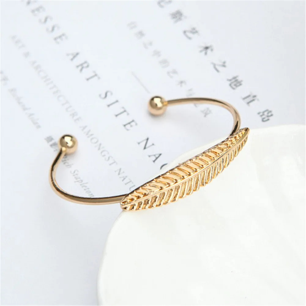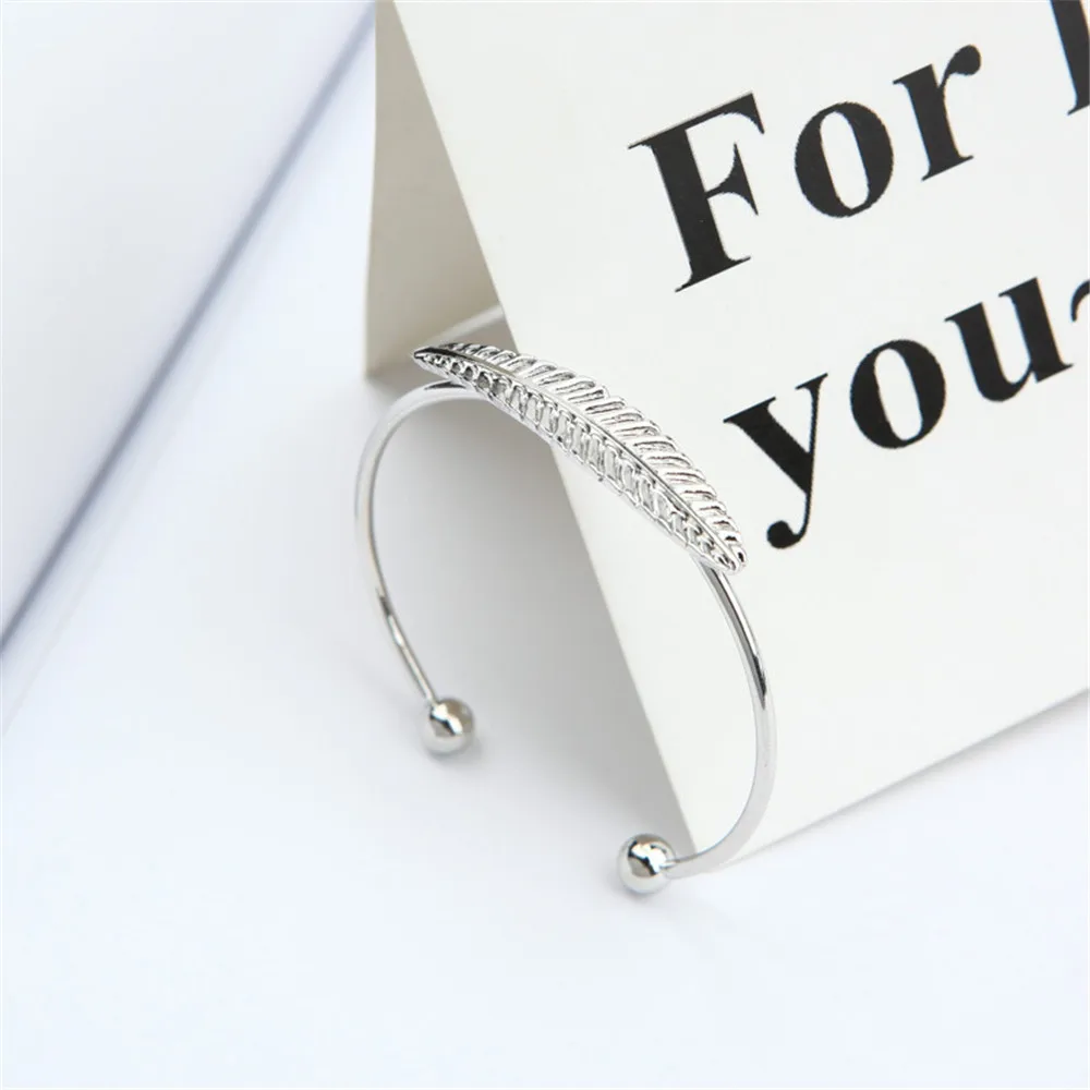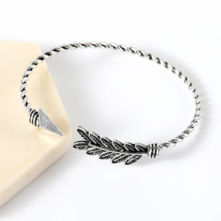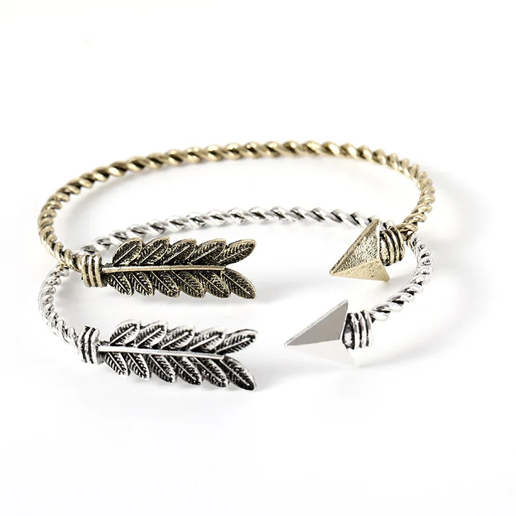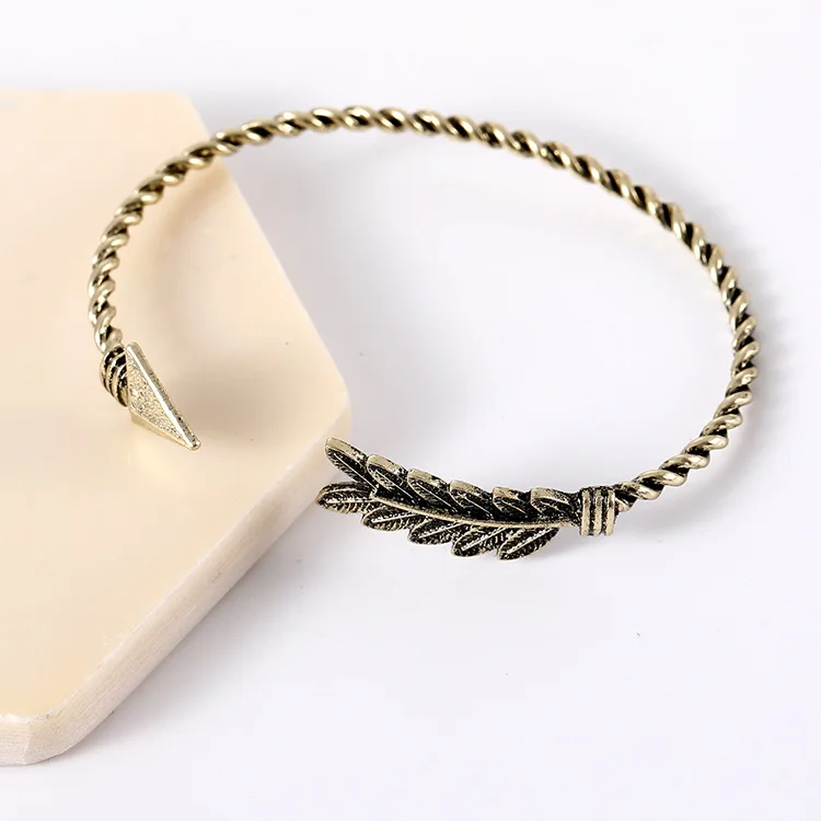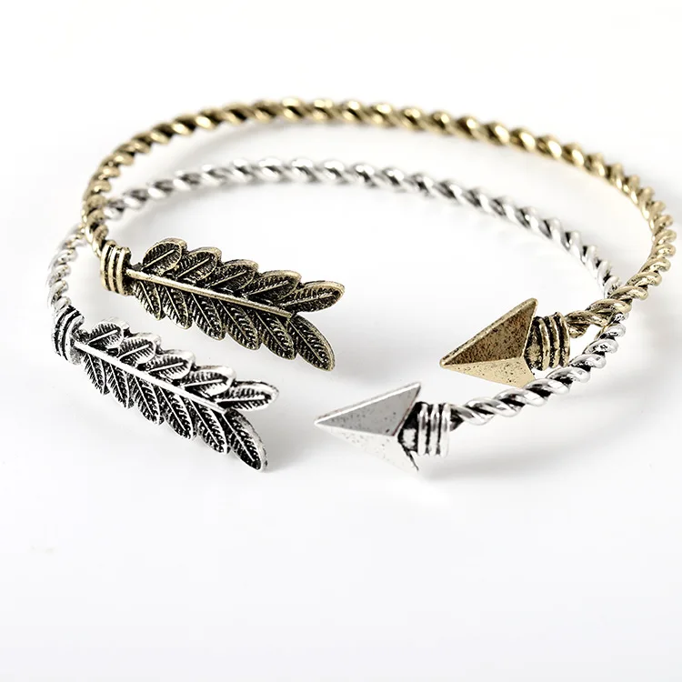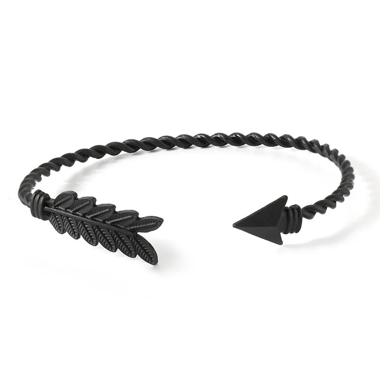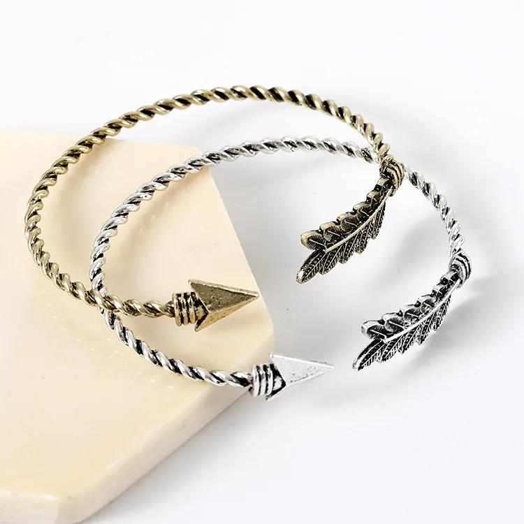 Fashion Alloy Triangular Arrow Bracelet Feather Leaf Openings Adjustable Retro Charming Bracelet for Men and Women Jewelry Gift