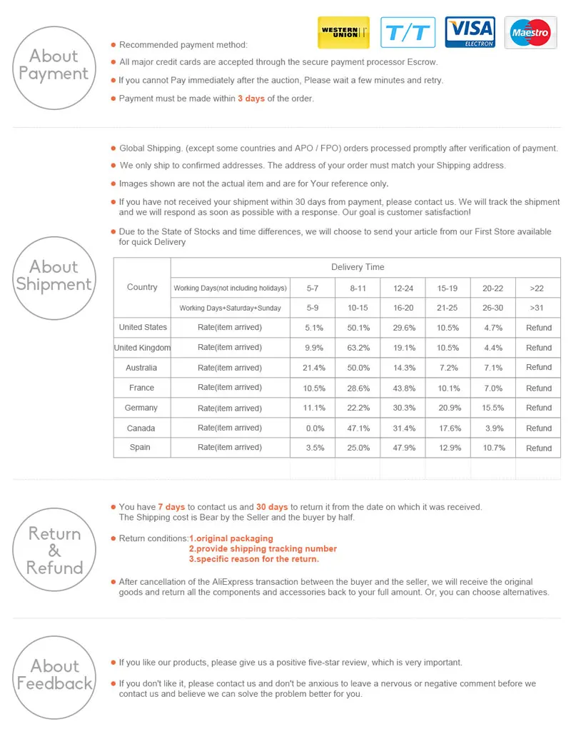 • If you did not receive the product within the guaranteed time( 45 days not including 2-5 day processing) you can request a refund or a reshipment.