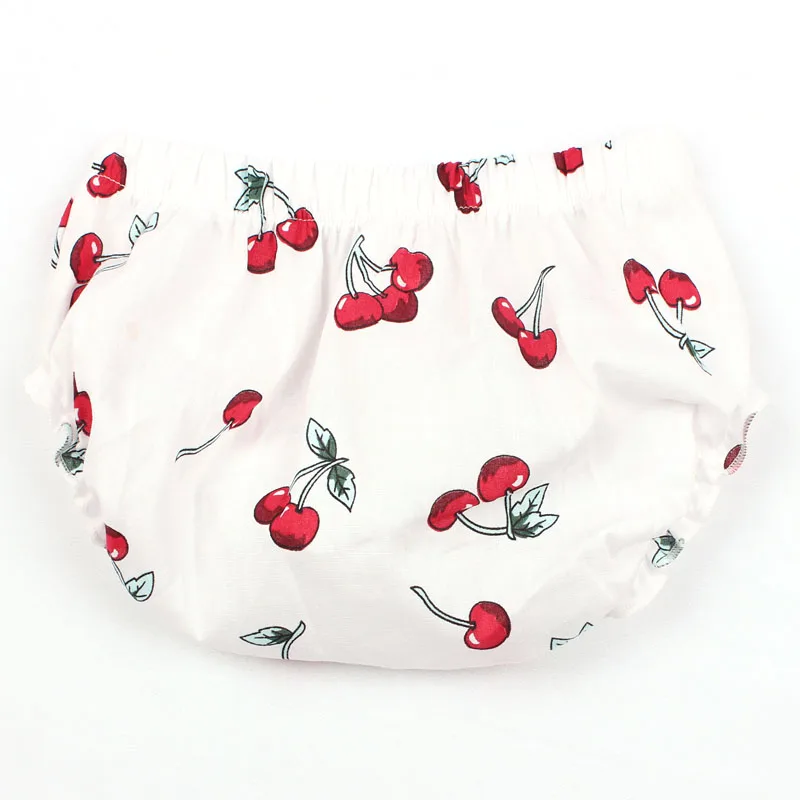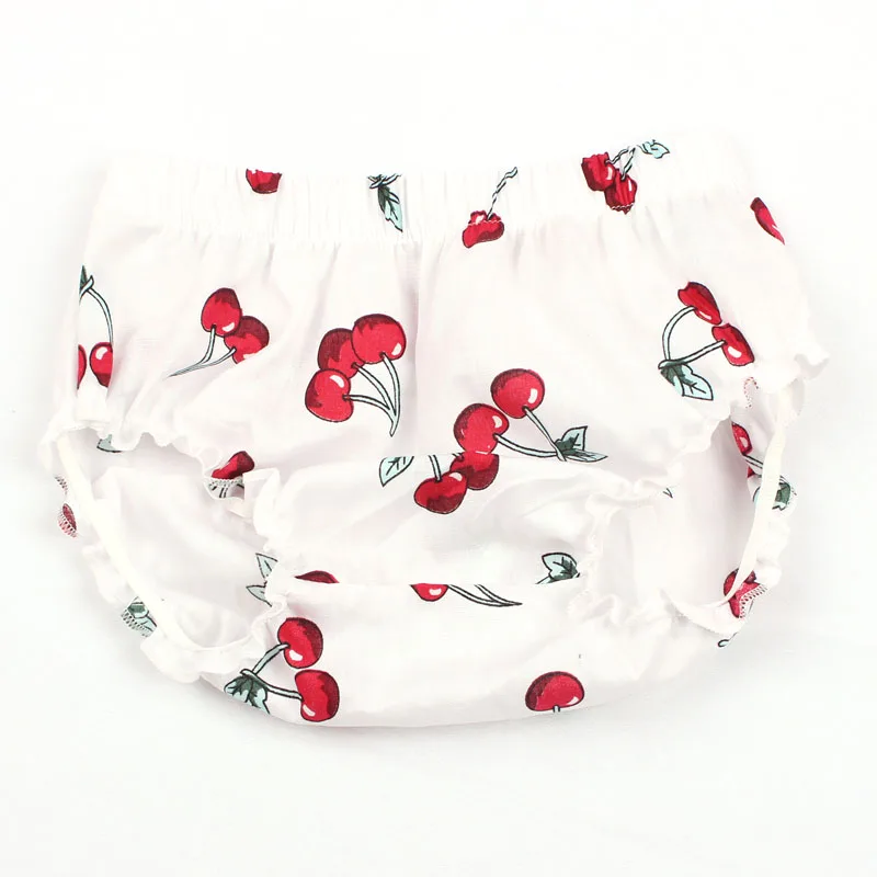 Fashion Baby Girl Cotton Cherry Pattern Ruffle Diaper Cover Baby Bloomers Toddler Cotton Shorts Clothes 3 Colors YC039
