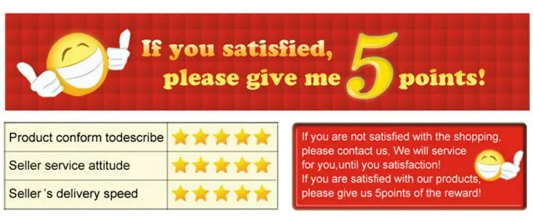 1. If you are satisfied with our products and service, Please leave us a 5 stars feedback.